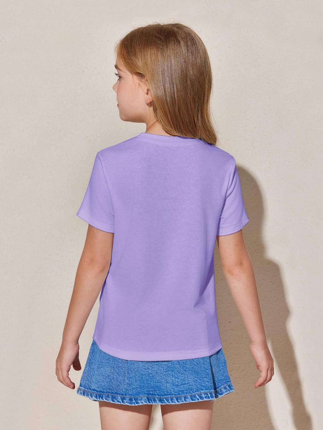 Haloumoning Girls Pleated T Shirts Kids Summer Short Sleeve Fashion Tops Tees 5-14 Years