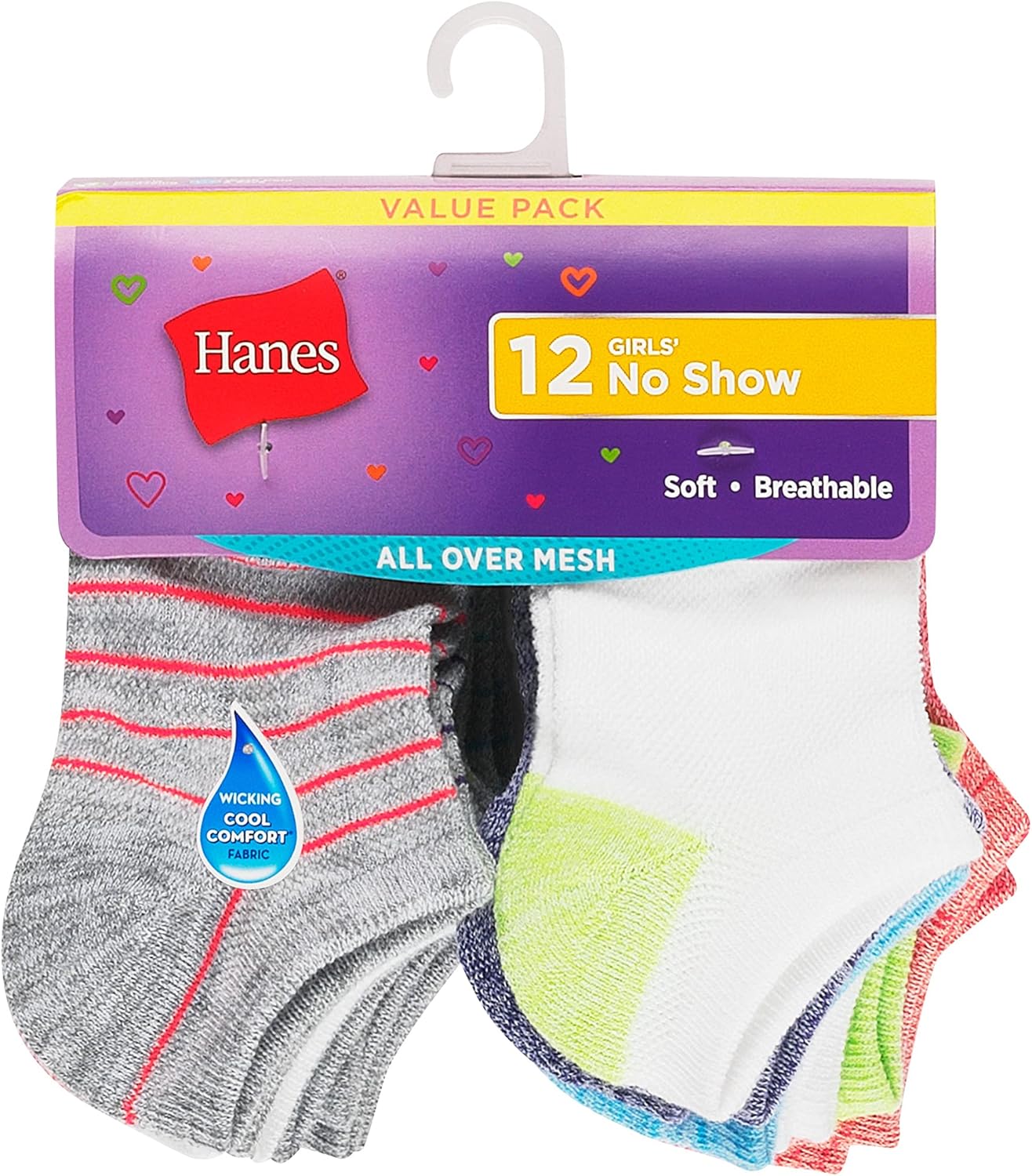 Hanes Girls Hanes Girls’ Socks, Breathable Arch Support No Show Socks, 12-Pair Packs