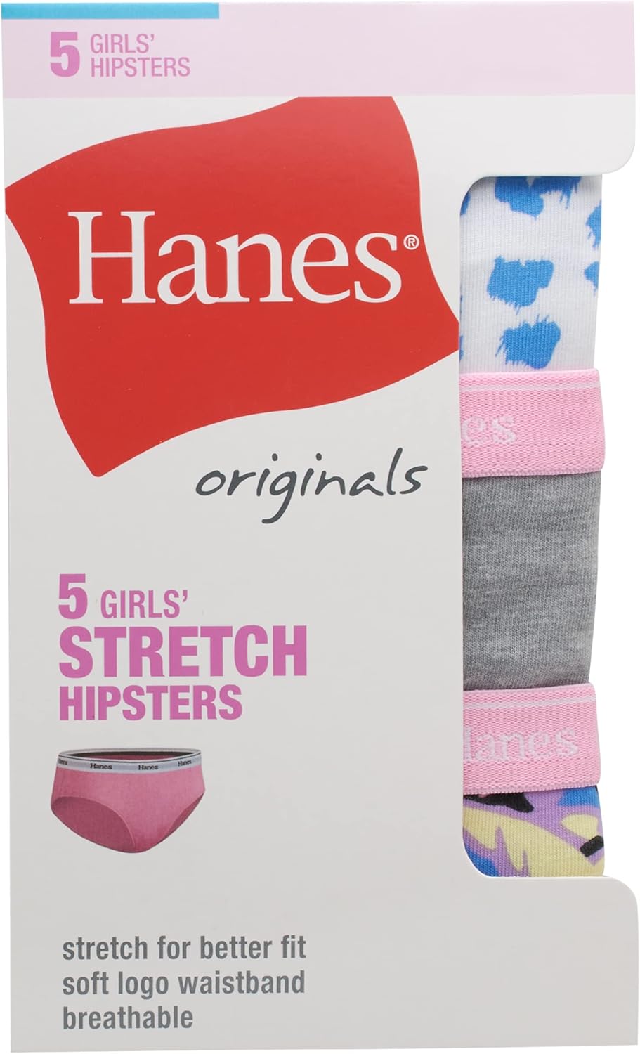 Hanes Originals Girls Boyshorts & Hipsters, Moisture-Wicking Cotton Stretch Underwear, Assorted 5-Pack