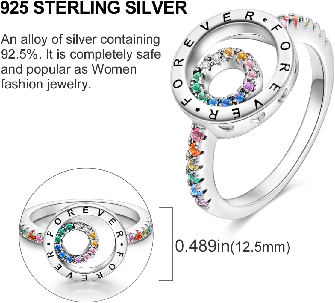 Hapour 925 Sterling Silver Ring for Women Stackable Eternity Non Tarnish Cute Band Rings for Teen Girls Size 6-9