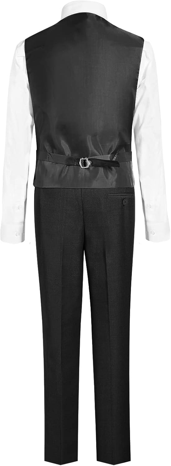 Happy Dolphin Boys Vest Set 4-Piece Suits Vest Kids Slim Fit Formal Vest with Suit Vest Pants Dress and Colorful Tie