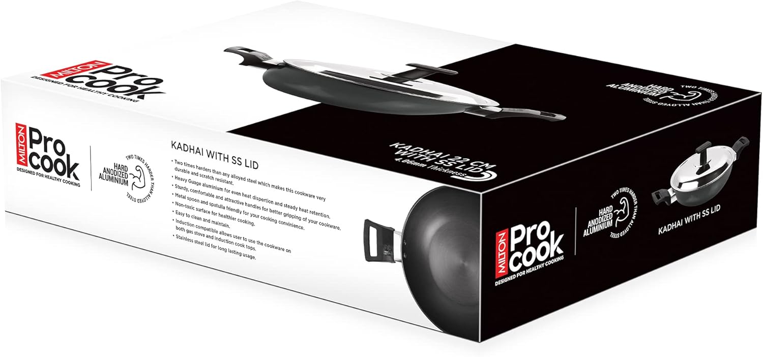 Material: Aluminium; Color: Dark Grey; Package Contents: 1 – Piece Hard Anodized Kadhai With Stainless Steel Lid (22 cm / 2.1 Litre); For any queries kindly reach customer care number as mentioned on the product packaging along with the proof of purchase.