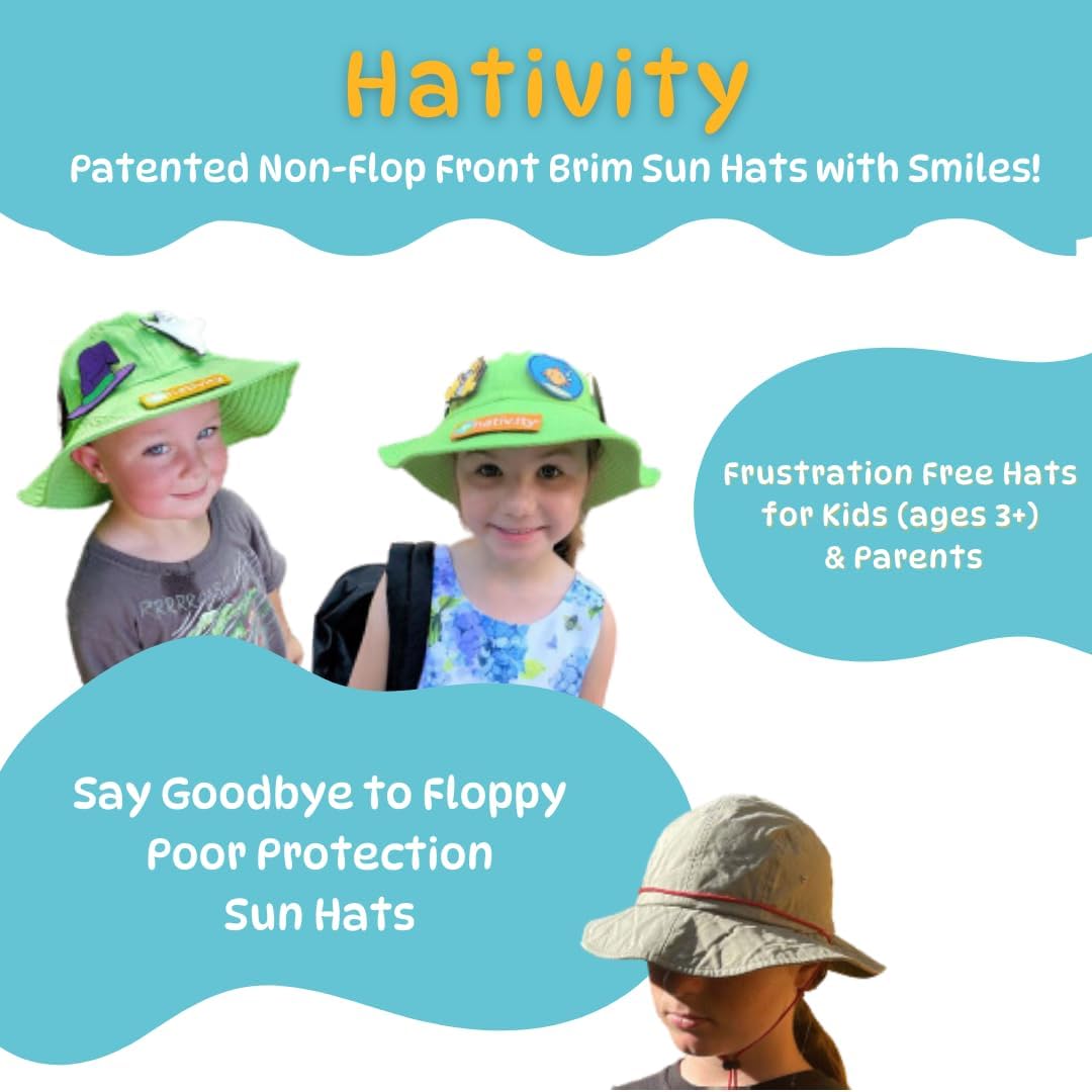 Unlike traditional sun hats, Hativity Sun Cap has patent designed unique features to ensure your child’s optimal sun protection, comfort & entertainment. Hativity’s non-flop and wide brim successfully blocks sunlight, while keeping children’s visual field clear. This makes them more likely to wear the hat, as they do not become frustrated with not being able to see!. A brim of 3.25 inches ensures maximum sun protection, and a soft elastic inner headband ensures a comfortable and snug fit. The interior mesh lining makes Hativity breathable and cool.