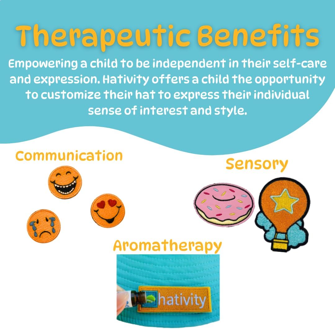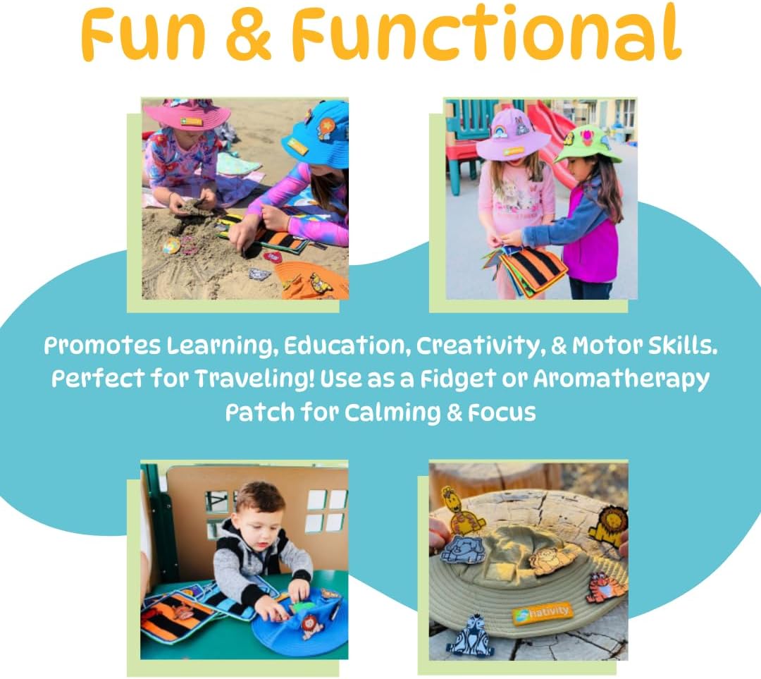 With a hook and loop system, children can personalize their Sun Caps by attaching the assorted Hativity Patches. Watch your children socialize and interact by customizing their hats!