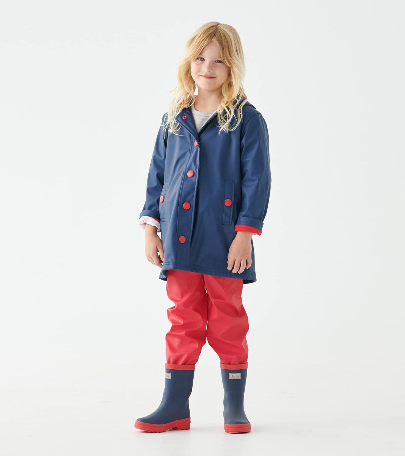 Discover our Kids Button-Up Rain Jacket: the ultimate ally for mini adventurers facing drizzly days. This jacket features a waterproof, breathable fabric that keeps the rain out while ensuring comfort. Seam-sealed for extra protection and lined with soft polyester, it provides warmth on cooler, rainy days without compromising on mobility or comfort. Eco-friendly and safe for kids, our PVC-free jacket prioritizes both the planet and your child’s well-being. The durable design withstands the rigors of outdoor play, making it a dependable choice for any weather adventure. The button-up front adds a classic touch and allows for easy dressing, catering to young ones’ growing independence. Beyond practicality, this jacket brings a sense of fun to wet weather with its playful design and snap welt pockets, perfect for holding little treasures. It’s not just protective wear; it’s a statement of joy and exploration, designed to encourage play, no matter the forecast.
