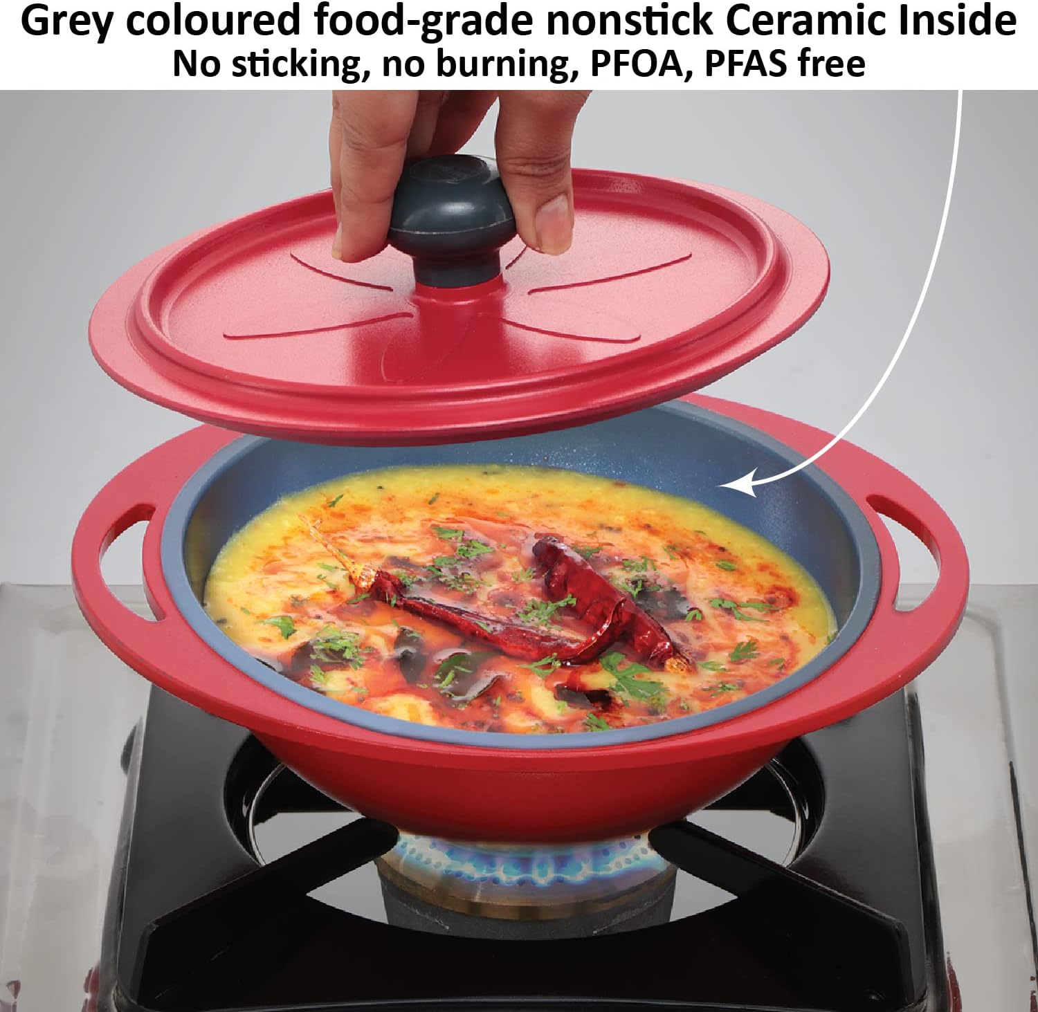 Grey coloured food-grade nonstick Ceramic Inside – no sticking, no burning, PFOA free