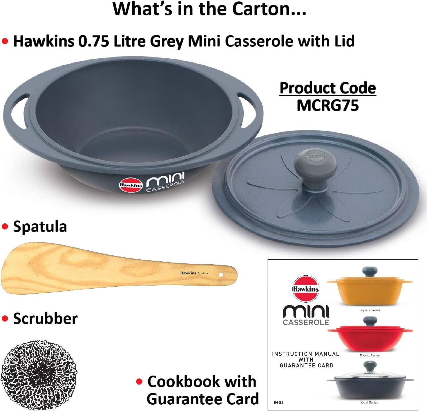 Be the first to review “HAWKINS 0.75 Litre Mini Casserole with Lid, Round Series Die-Cast pan for Cooking, Reheating, Serving and Storing, Grey (MCRG75)”