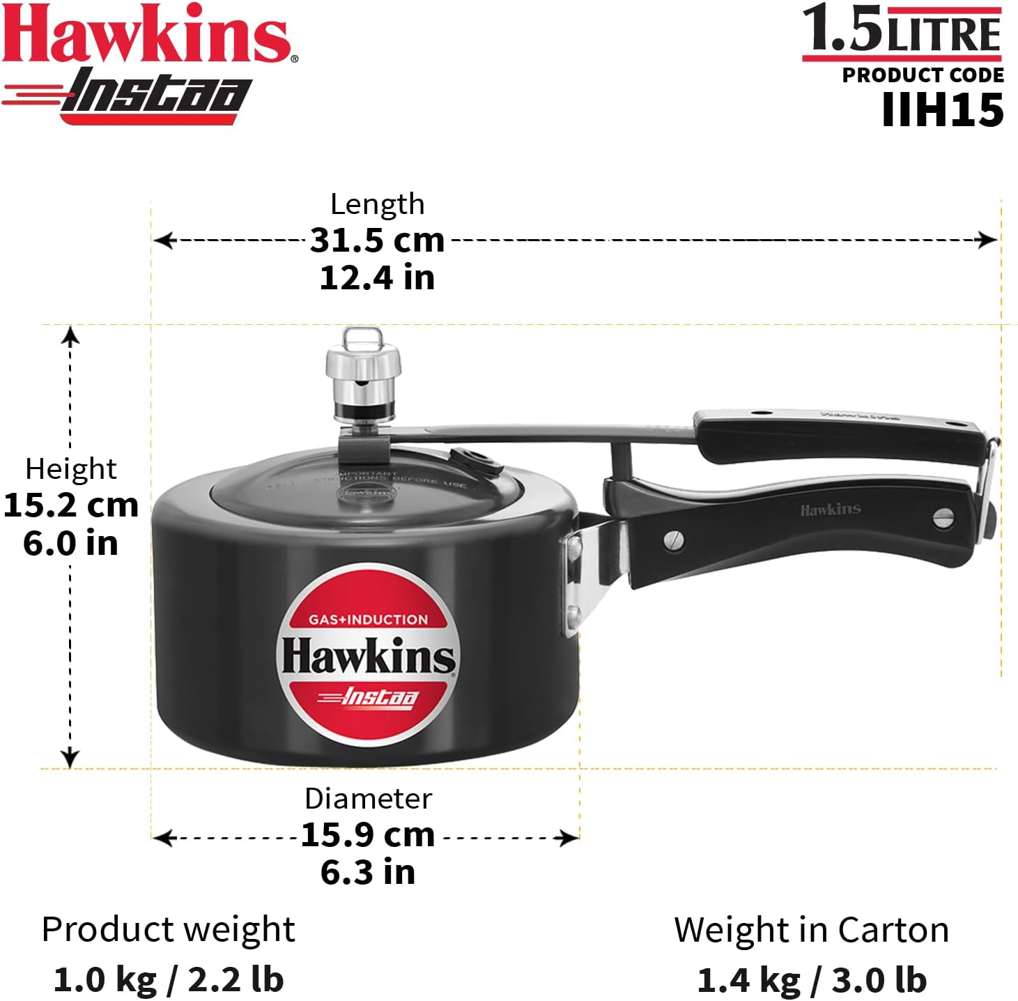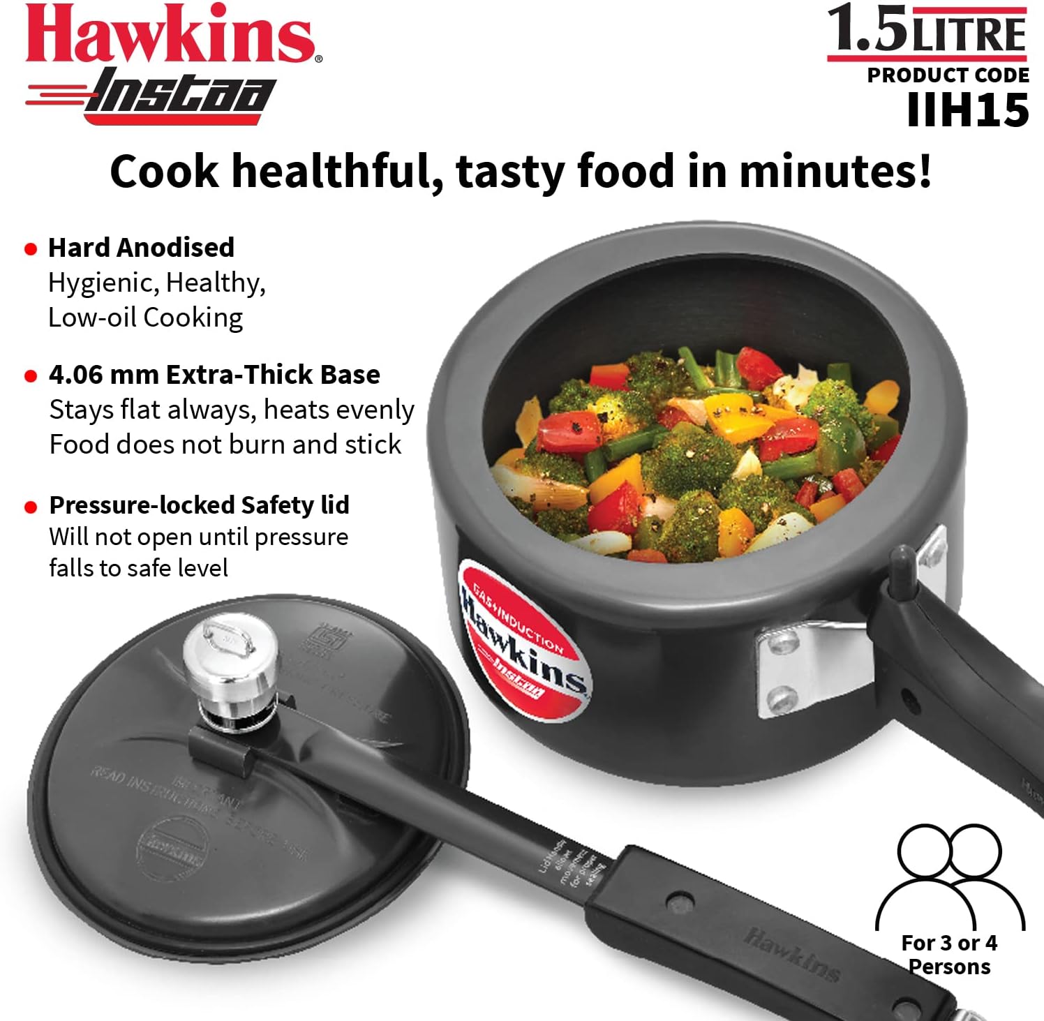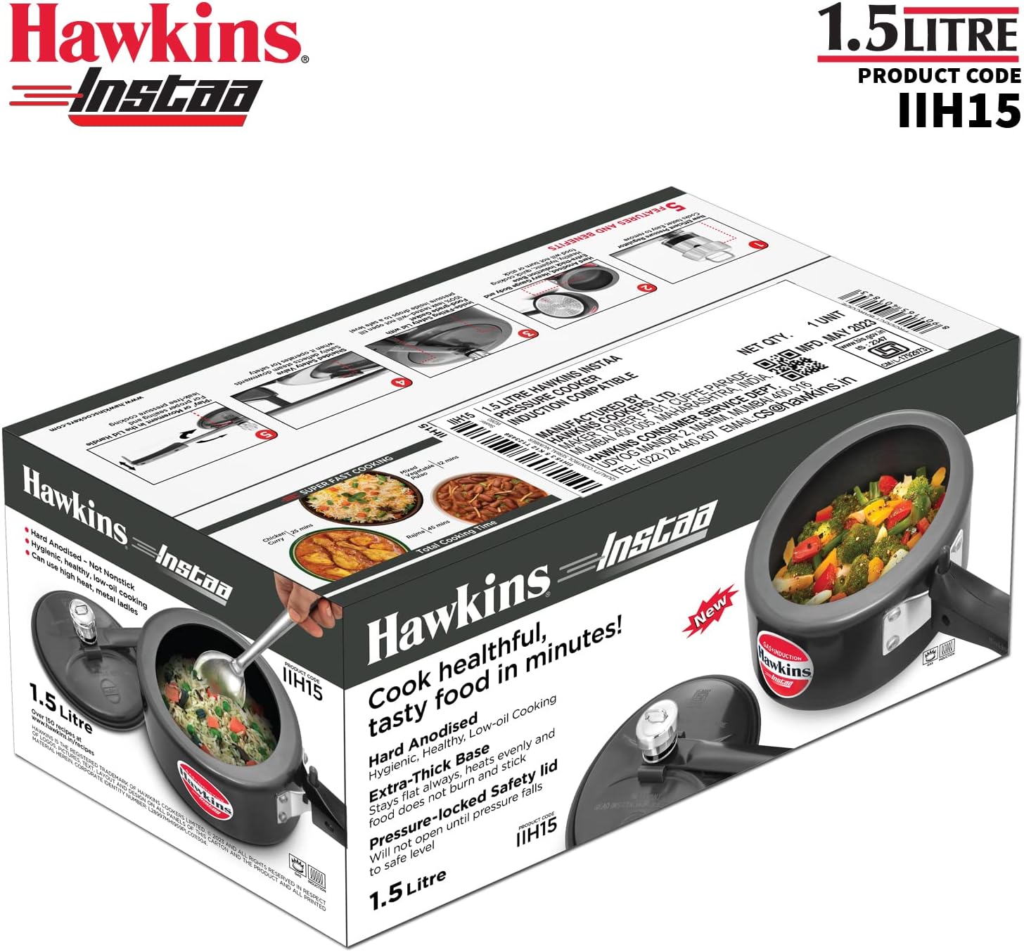 Be the first to review “Hawkins 1.5 Litre Instaa Pressure Cooker, Induction Inner Lid Cooker, Tall Body Hard Anodised Cooker, Best Black Cooker, Black (IIH15)”