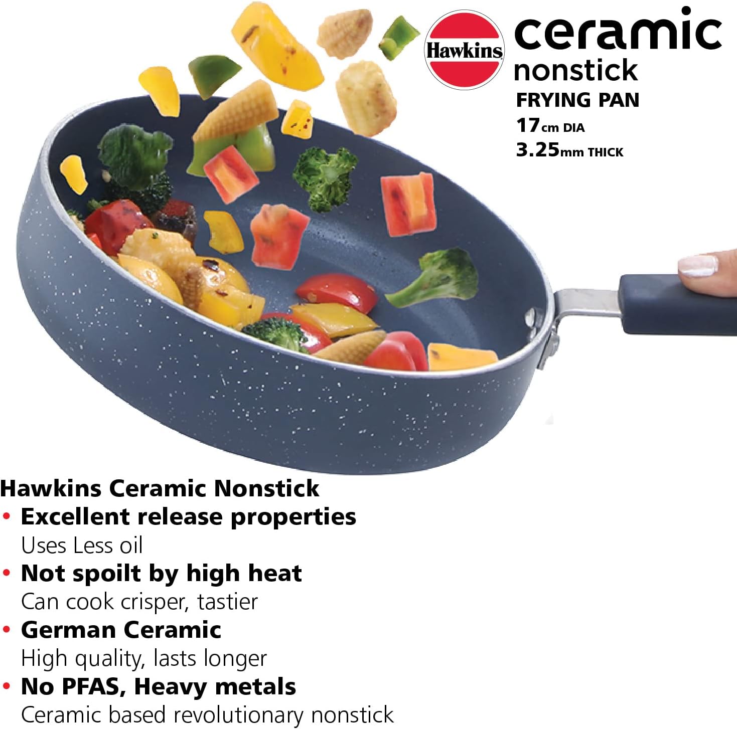 Hawkins Ceramic Nonstick Frying Pan, 17 cm Diameter, Induction Fry Pan with Glass Lid, Granite Omlette Egg Pan, Fish Pan (ICF17G)