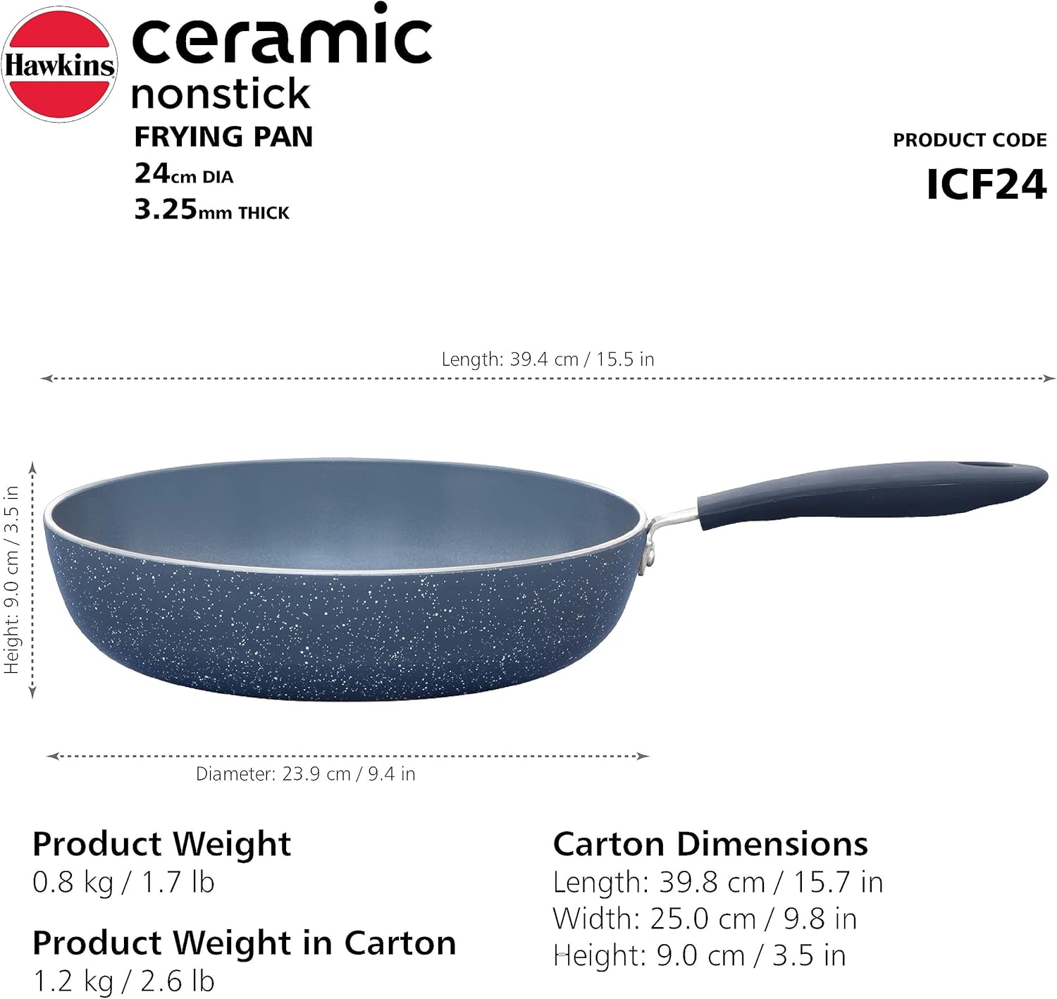 Hawkins Ceramic Nonstick Frying Pan, 24 cm Diameter, Induction Fry Pan, Granite Omlette Egg Pan, Fish Pan (ICF24)