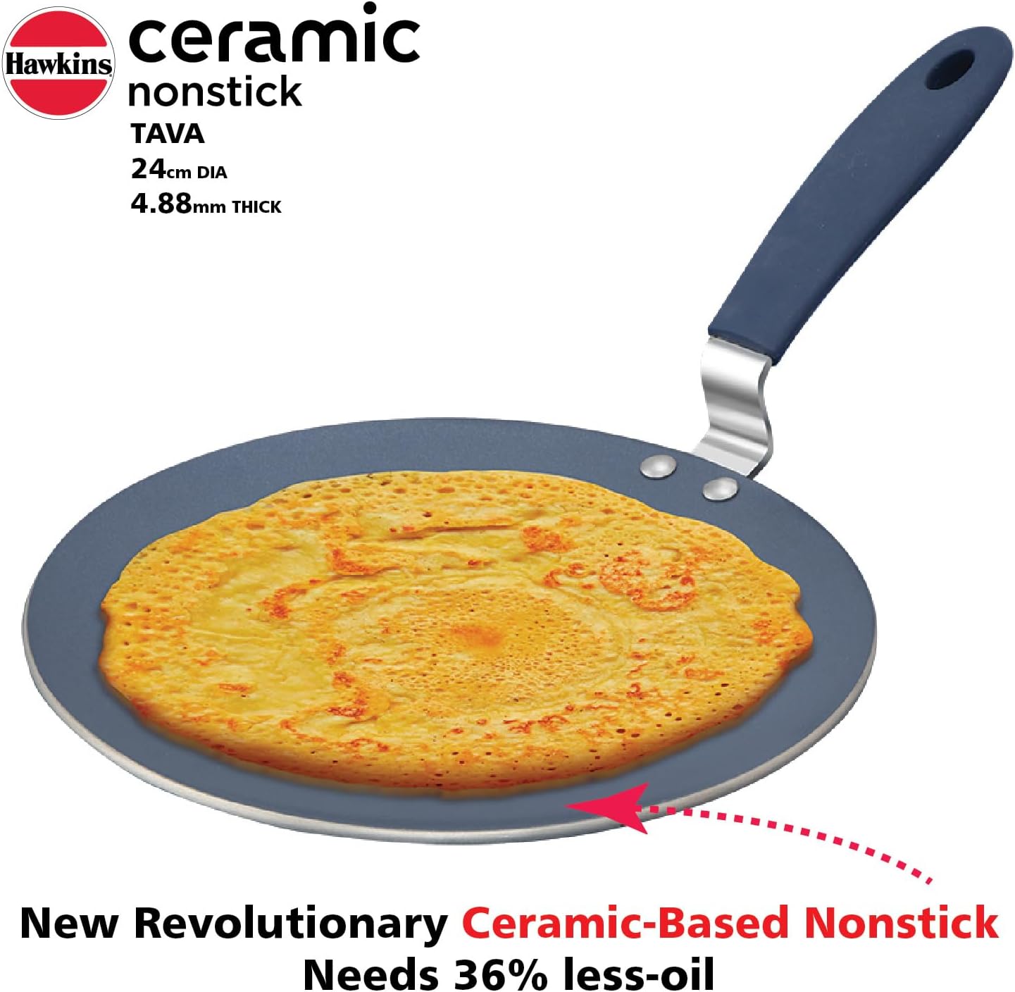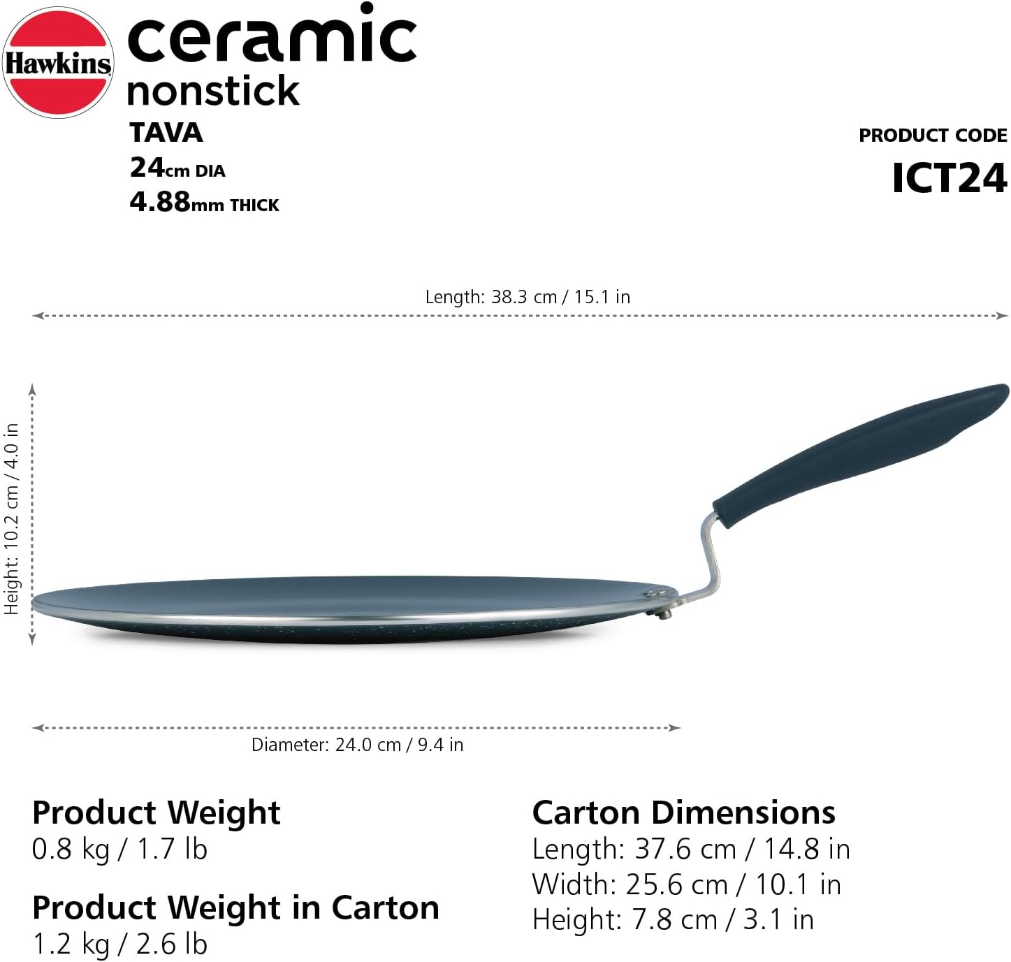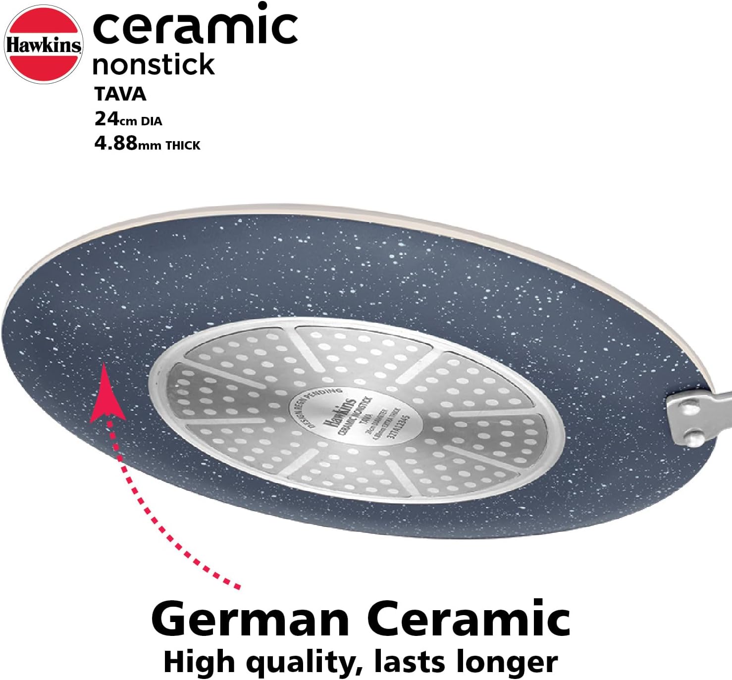 HAWKINS Ceramic Nonstick Tava, 24 cm Diameter, Induction Paratha Tawa, Granite Griddle (ICT24)