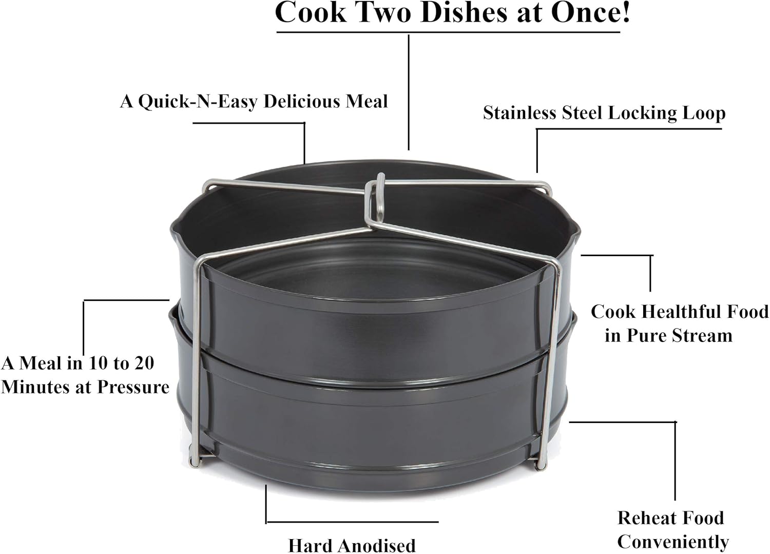 The separators along with a stand for convenient stacking can be used for cooking two or more dishes at a time. Reheat food conveniently. Separators can be used for steaming foods which are to be kept out of water. A Quick-n-easy delicious meal. Cook healthful food in pure steam.