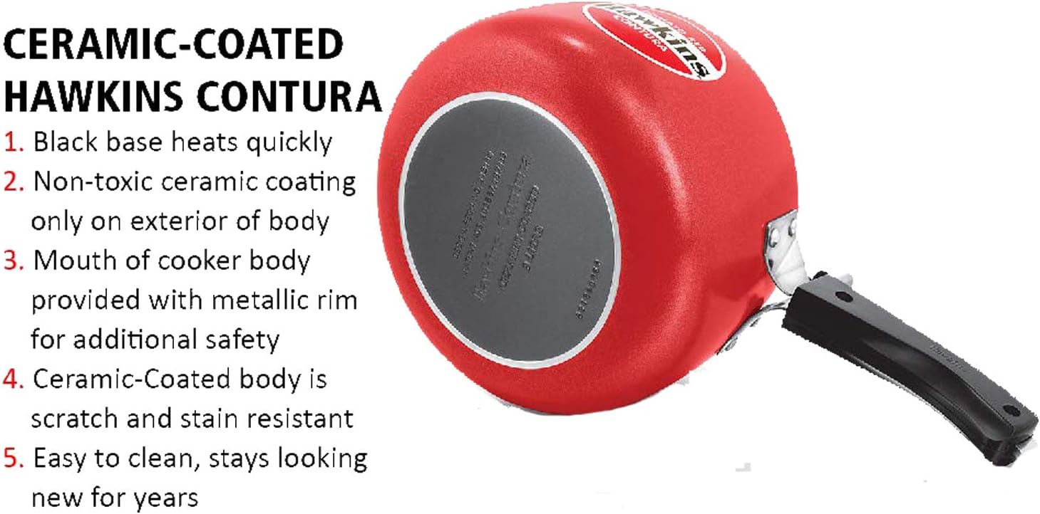 Hawkins Contura Ceramic Coated 5 LTR Tomato Red Pressure Cooker with Hard Anodised 2 Pc Separater Cooker Dabba and Stand