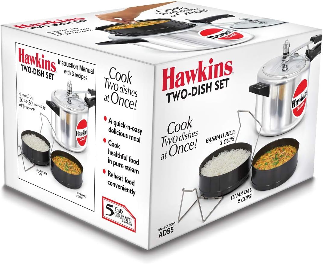 Be the first to review “Hawkins Cooker IH50-2250, Two DIsh Set ADS5-650 Induction Base Aluminium Pressure Cooker With Two Dish Set/separator, 5 Litres, Silver”