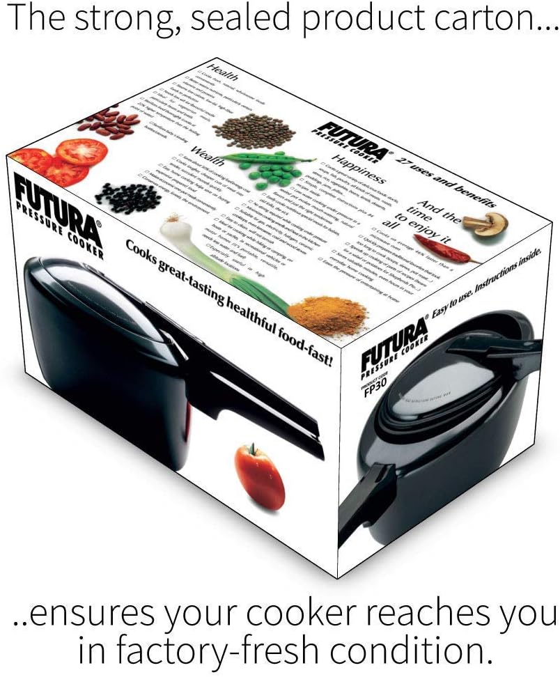The beautiful, durable black finish given by 60 micron thick hard anodising has two benefits. It makes the pressure cooker absorb heat faster making it more energy-efficient.