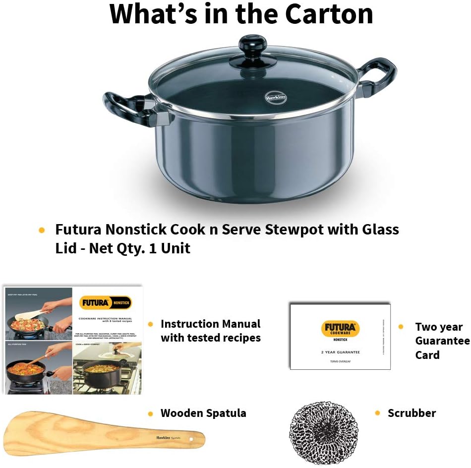 Hawkins Futura Non-Stick Stewpot With Glass Lid, 5 Litres Black