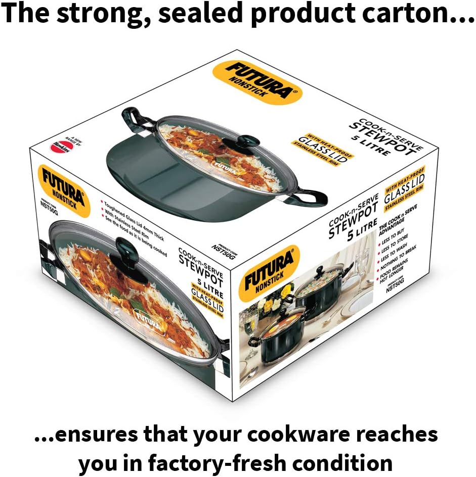Hawkins Futura Non-Stick Stewpot With Glass Lid, 5 Litres Black