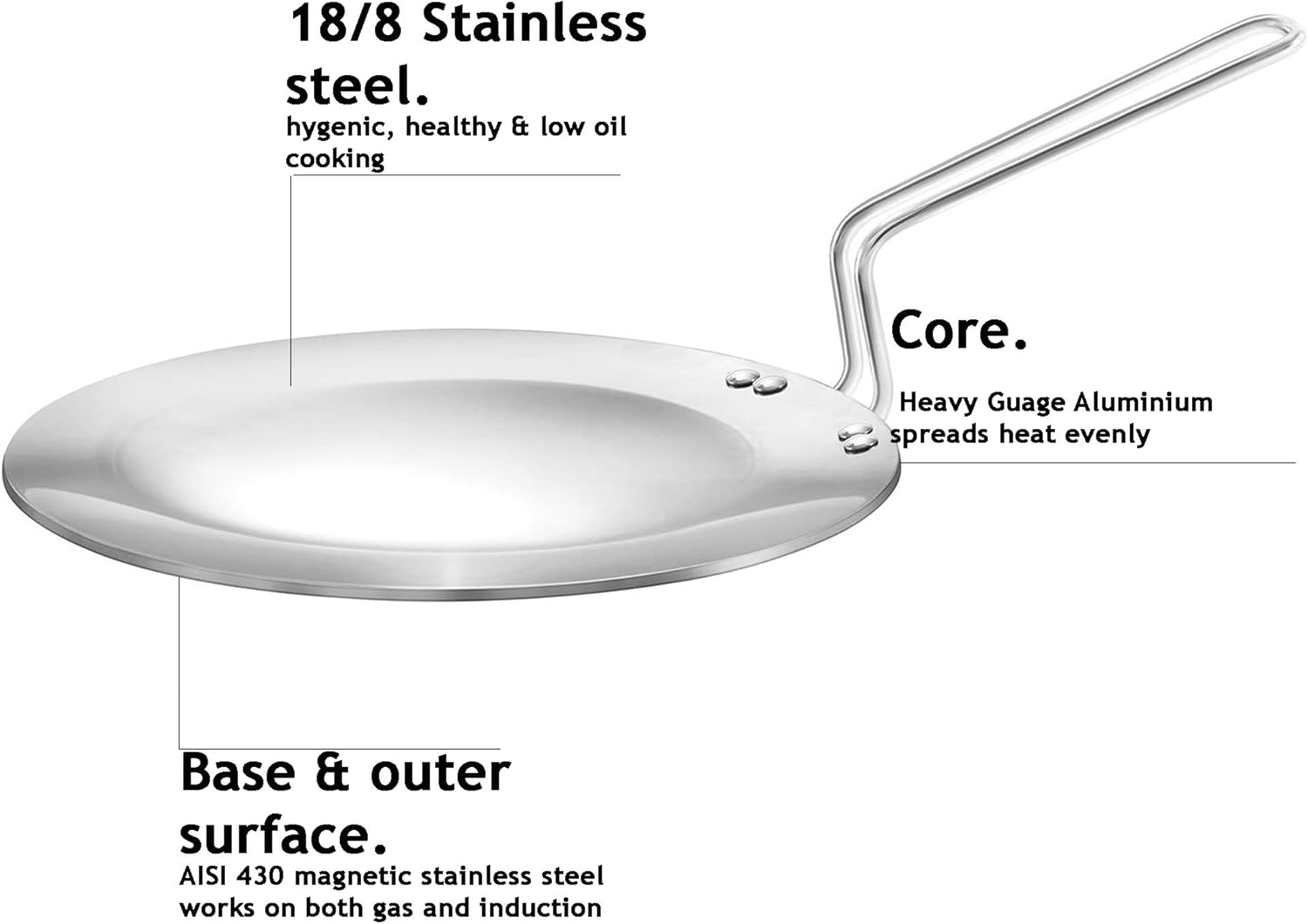 Triply 3.5 mm Stainless Steel Tawa 26 cm, 3 mm Extra-Thick Stainless Steel Frying Pan 26 cm without Lid. 5 Year Guarantee.