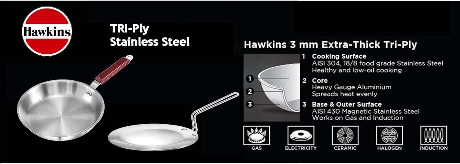 Hawkins Triply Stainless Steel 3.5 mm Tawa 26 cm and 3 mm Frying Pan 26 cm Without Lid