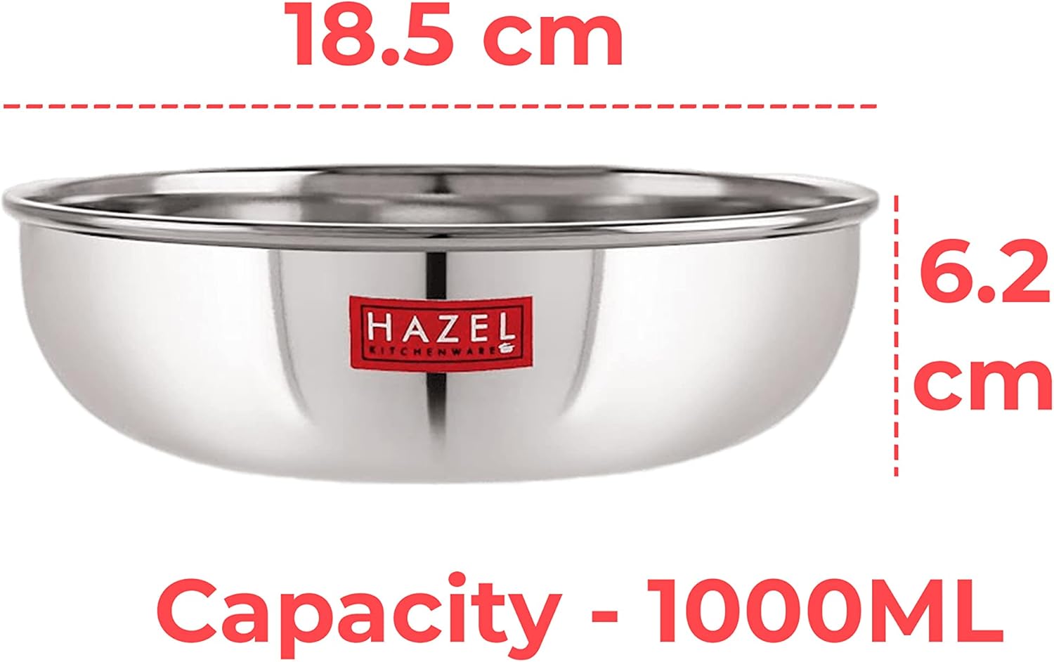 Hazel Alfa Premium Heavy Gauge Stainless Steel Tasra Kadhai Cookware (1 LTR), Silver