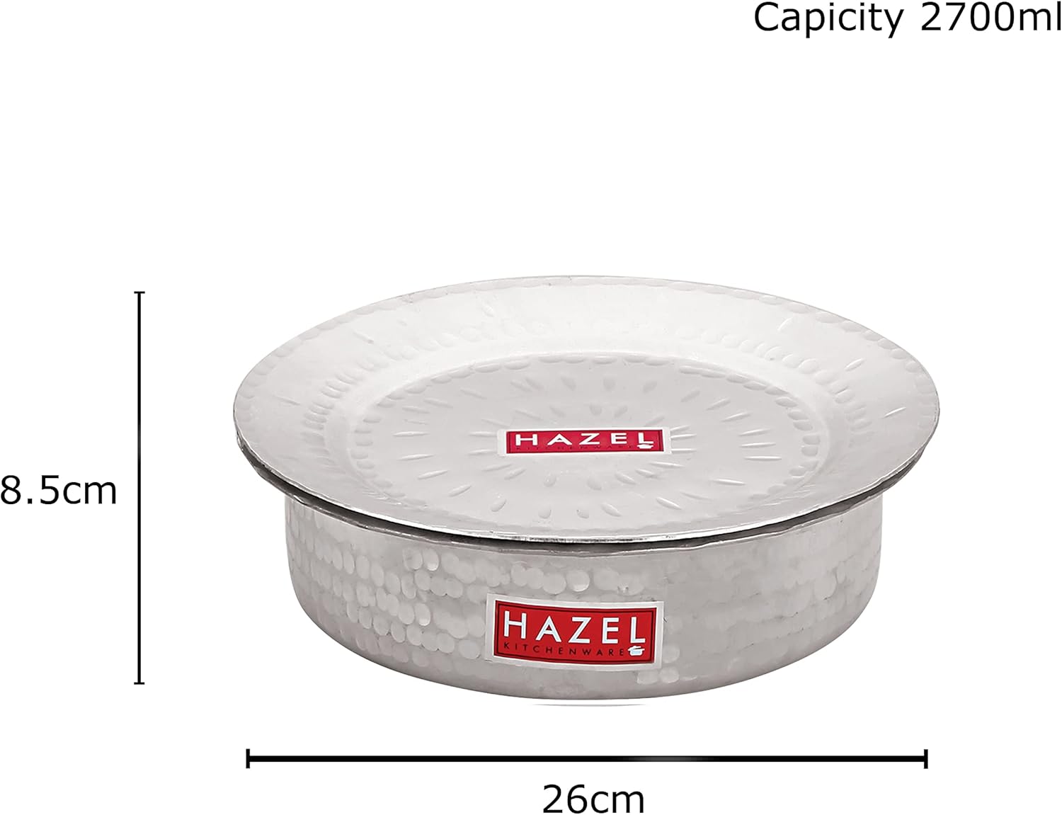 HAZEL Aluminium Langdi Patila | Flat Tope with Lid Hammered Finish Round Bottom Boiling Tope | Vessels Bhagona Dekchi, 26 cm, 2700 ML