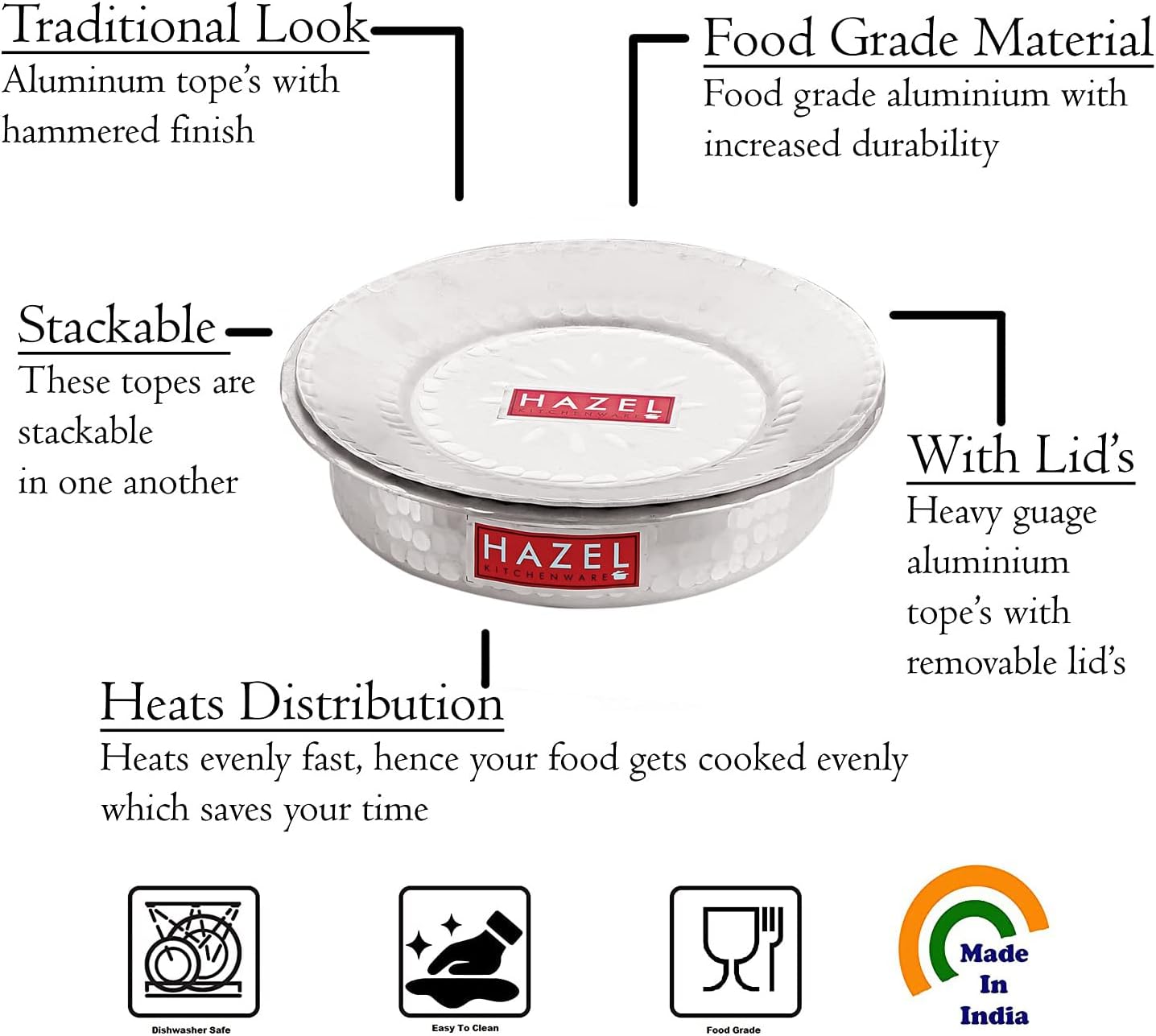 HAZEL Aluminium Langdi Patila Pot With Lid Hammered Finish Round Bottom Boiling Tope Vessels Bhagona Dekchi, 26 cm, 2700 ML