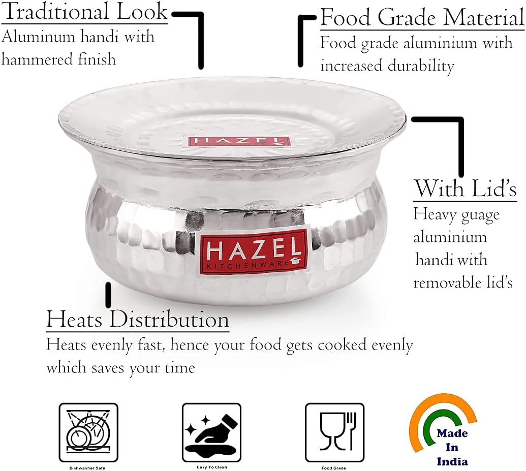 HAZEL Biryani Pot| Aluminium Biryani Handi Set, 1400 ML| Aluminium Hammered Finish Tope, Patila Handi | Multipurpose Aluminium Cooking Utensils for Kitchen