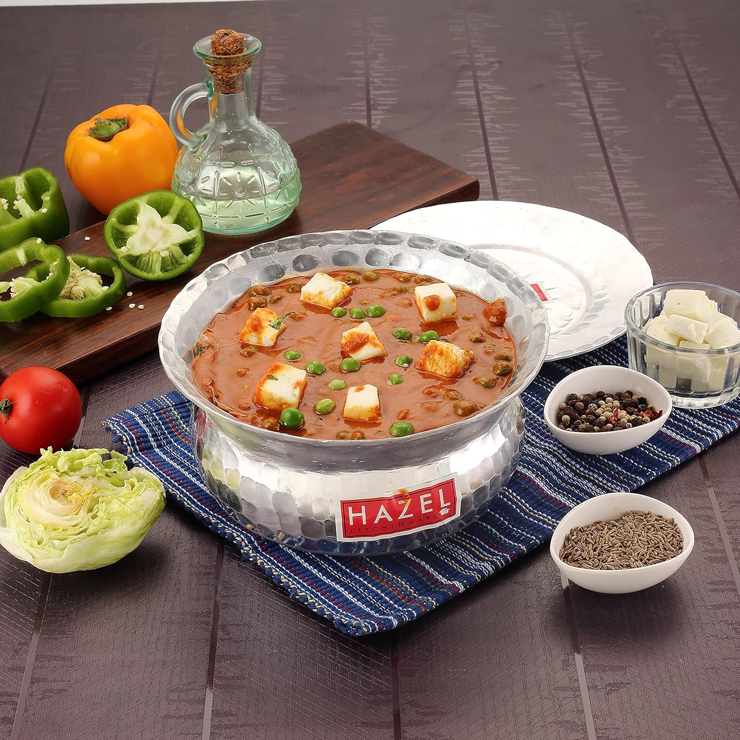 HAZEL brings an ideal biryani handi cookware for your kitchen with aluminium hammered finish and thick bottom. This aluminium kadai without handle comes with a classy finish and gives your kitchen an elegant look. Being among the most versatile cooking utensils available, this pot can be used to prepare curries, soup, pulao and various other dishes, as per your liking and also can be used for serving food. The biryani handi can be used for home, restaurants, catering service and more.