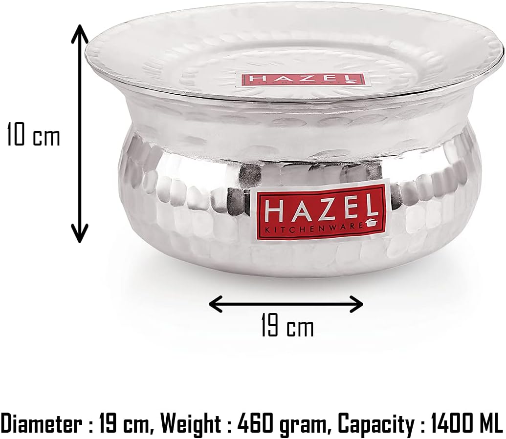 HAZEL Biryani Pot| Aluminium Biryani Handi Set, 1400 ML| Aluminium Hammered Finish Tope, Patila Handi | Multipurpose Aluminium Cooking Utensils for Kitchen