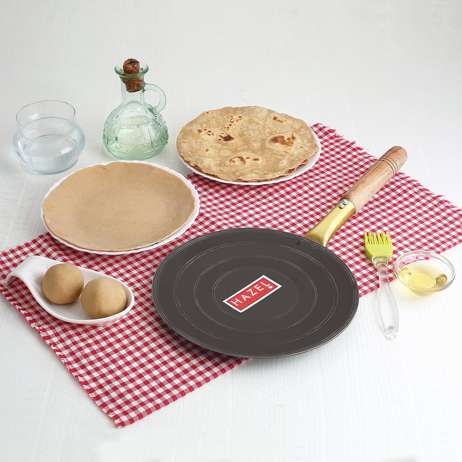Be the first to review “HAZEL Iron Tawa with Wooden Handle Grip Lokhand Loha Pan Concave Tava for Chapathi Roti Paratha Fulka Dosa Omelette, 24.5 cm”