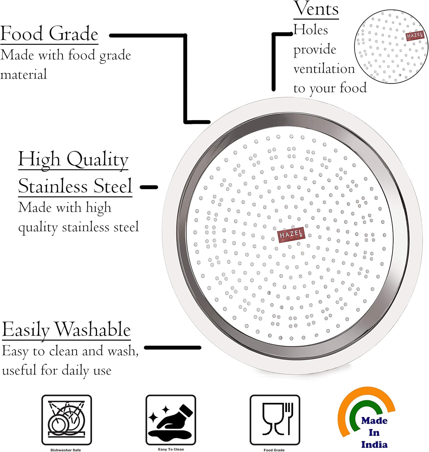 HAZEL Stainless Steel Cover Lid with Holes| Steel Cover Lids for Utensils |Steel Cover Hole Chiba for Tope, Kadhai, Pan, Pots, Set of 3