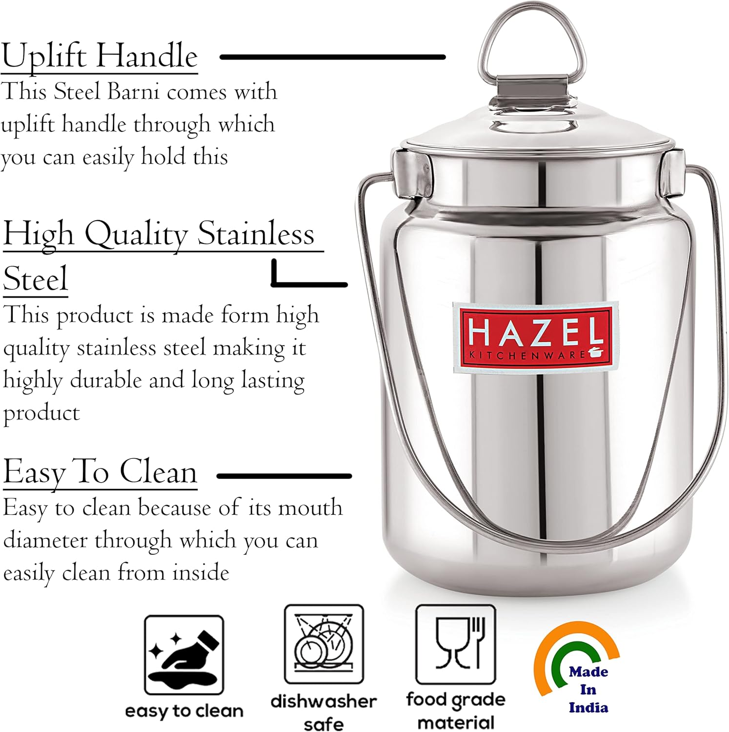 HAZEL Stainless Steel Plain Barani, 1 Ltr, Silver