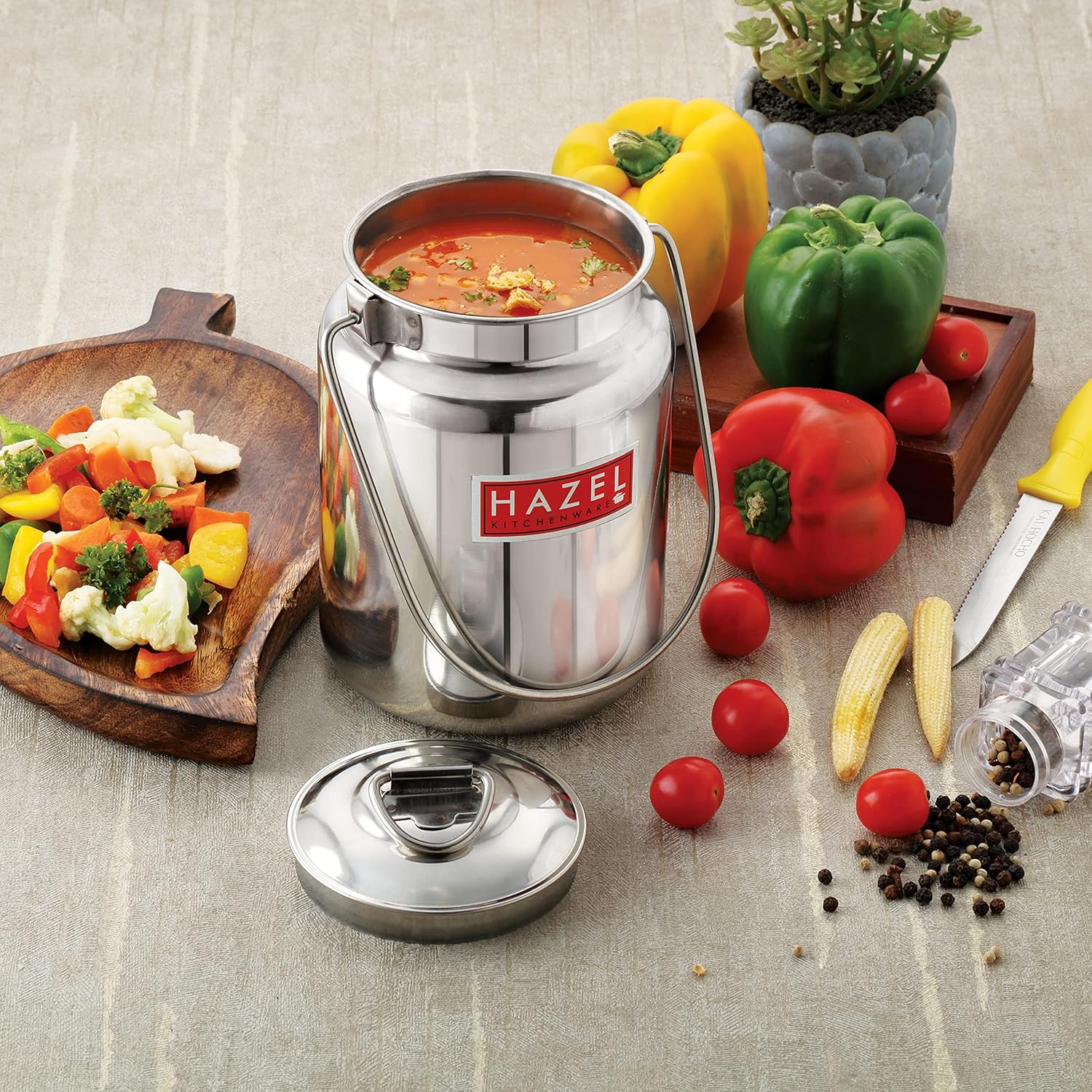 Hazel is one of the leading brand in household products. Hazel designs products as per the market trends with maintaining standard quality. Hazel have wide range of kitchenware products like containers, bottles, baskets, jugs. plates, bowls, trays, scissors, knives, spoons, topes, pali, palati, pans, pots, cookers, flasks, thermos, lunch boxes, etc. Hazel use the high quality material such as food grade stainless steel, plastic, melamine, ceramic, etc.