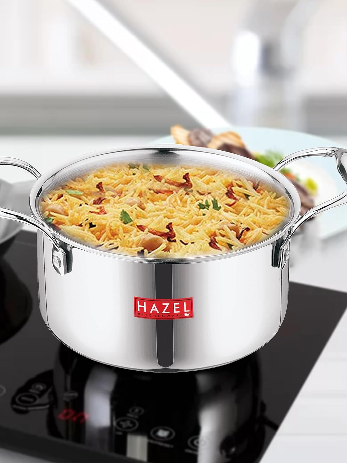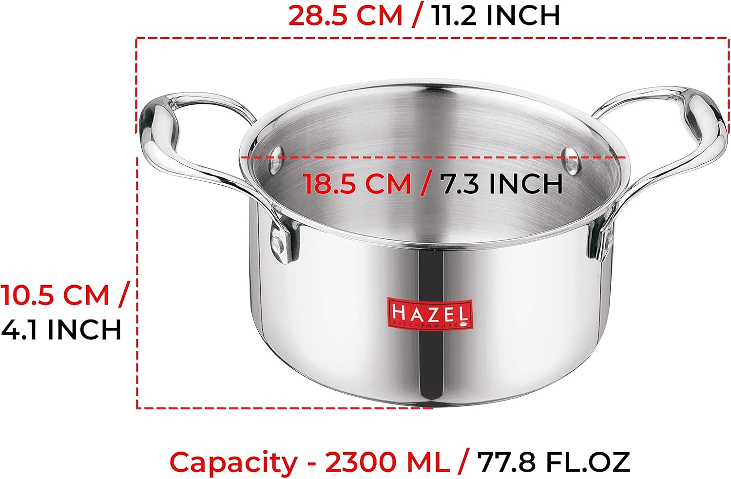 HAZEL Tri-Ply Stainless Steel Induction Bottom Tope with Handle, 2.3 Litre, 18.5 cm