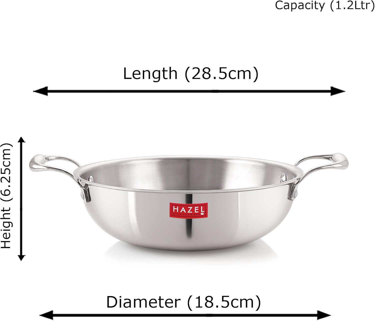 HAZEL Triply Stainless Steel Induction Bottom Kadhai, 1.2 Litre, 18.5 cm