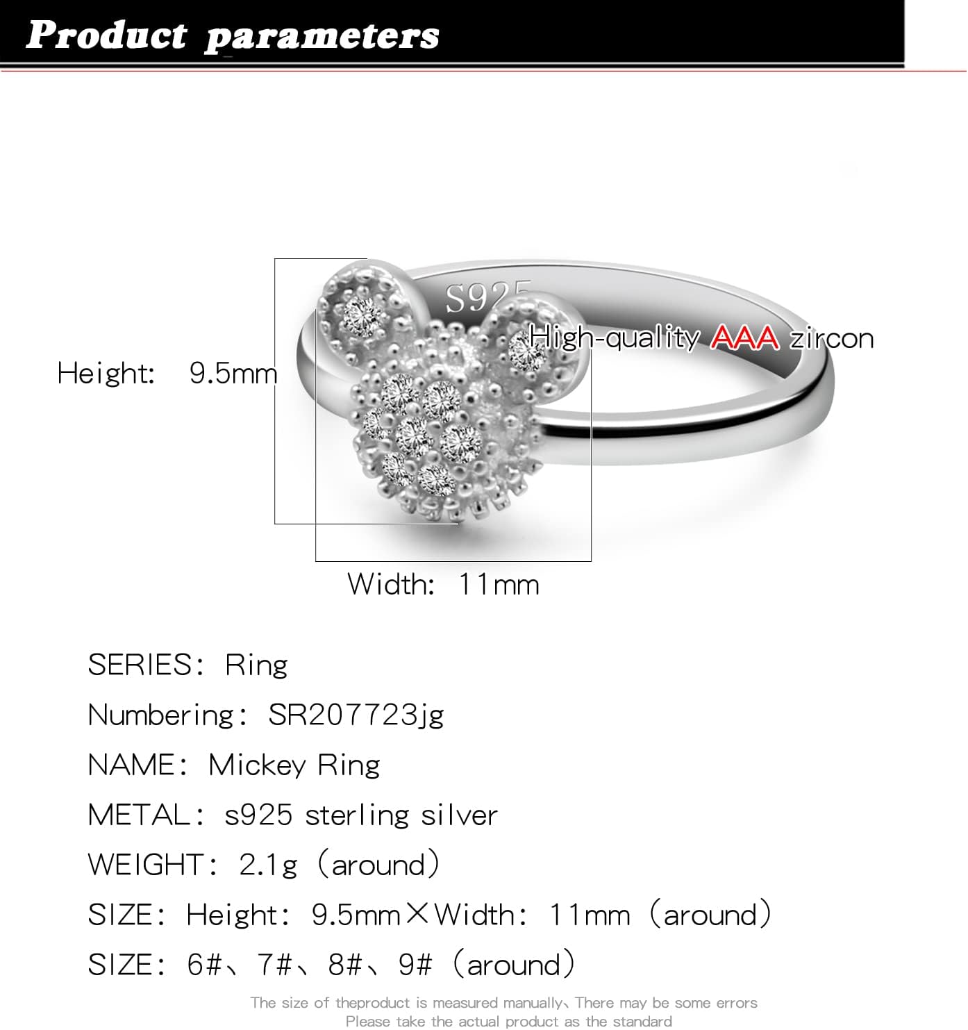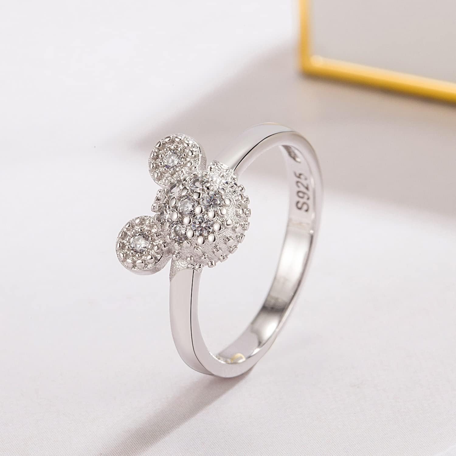 H&Beautimer 925 Sterling Silver Rings for Women-Cute Mickey Design Rings-Women’s Girls Fine Jewelry-AAA CZ Wedding Rings 3-4-5-6-7-8-9#-Handmade in Italy