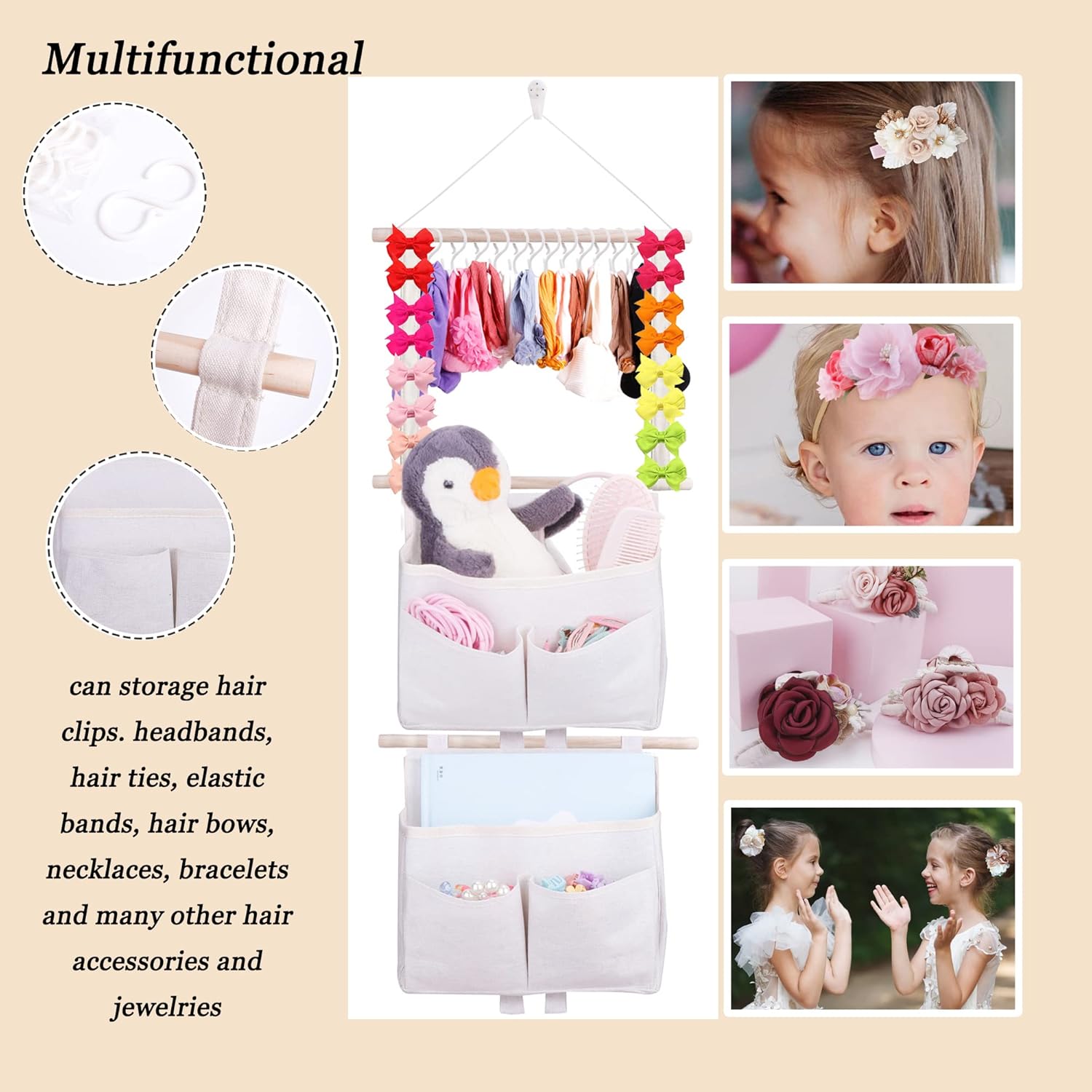 Headband Holder Hair Bows Organizer for Girls, Baby Headbands Storage Organizers Wall Hanging Decor for Nursery Room