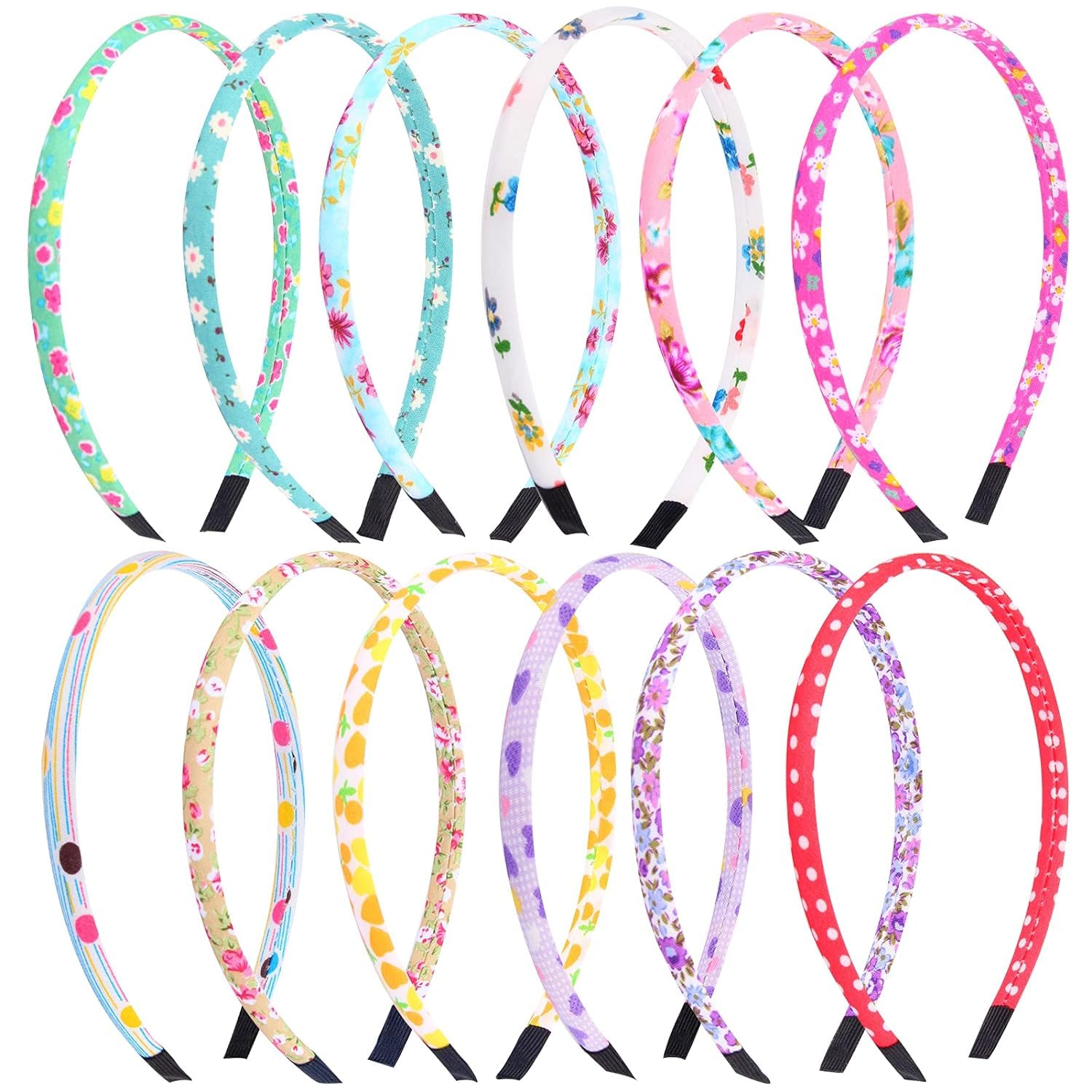 Headbands for Girls 12Pcs Thin Head Bands for Kids Children Hairbands for Toddler Floral Cloth Fabric Covered Headband Birthday Party Favors