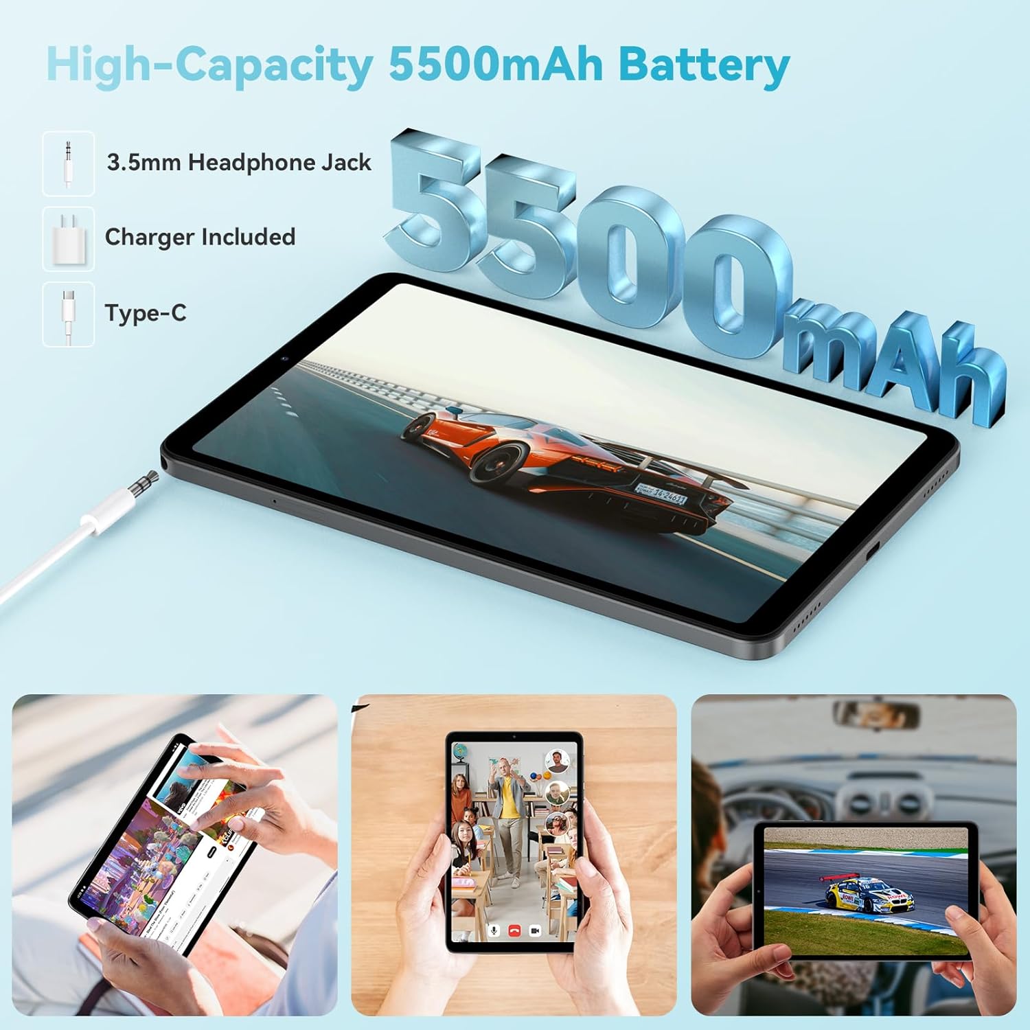 Powerful Battery Capacity – 8 inch tablet features a large 5500mAh cobalt lithium battery, providing extended usage and improved safety. It is equipped with a Type-C port and a 3.5mm headphone jack, offering convenient connectivity options for all your devices