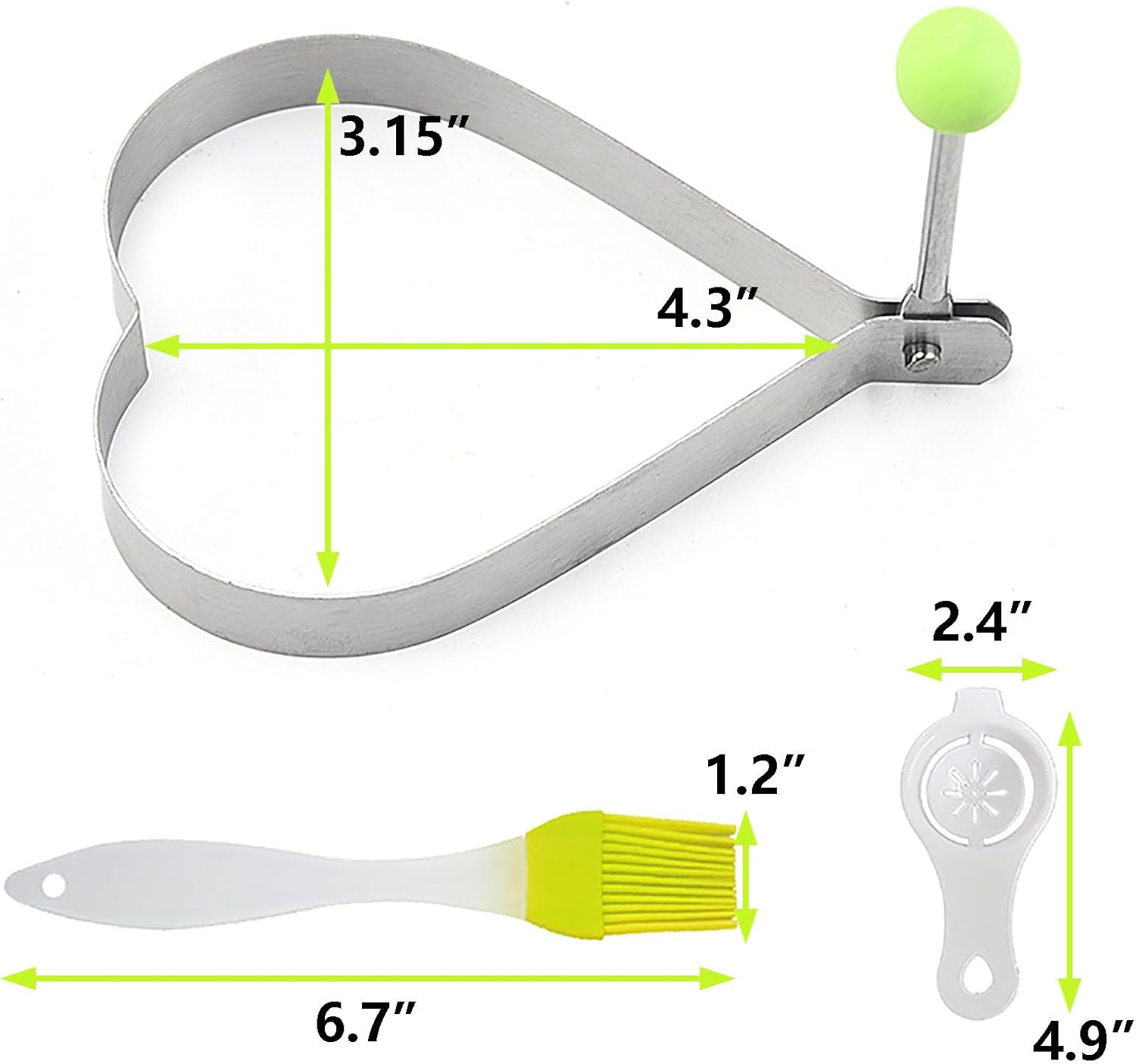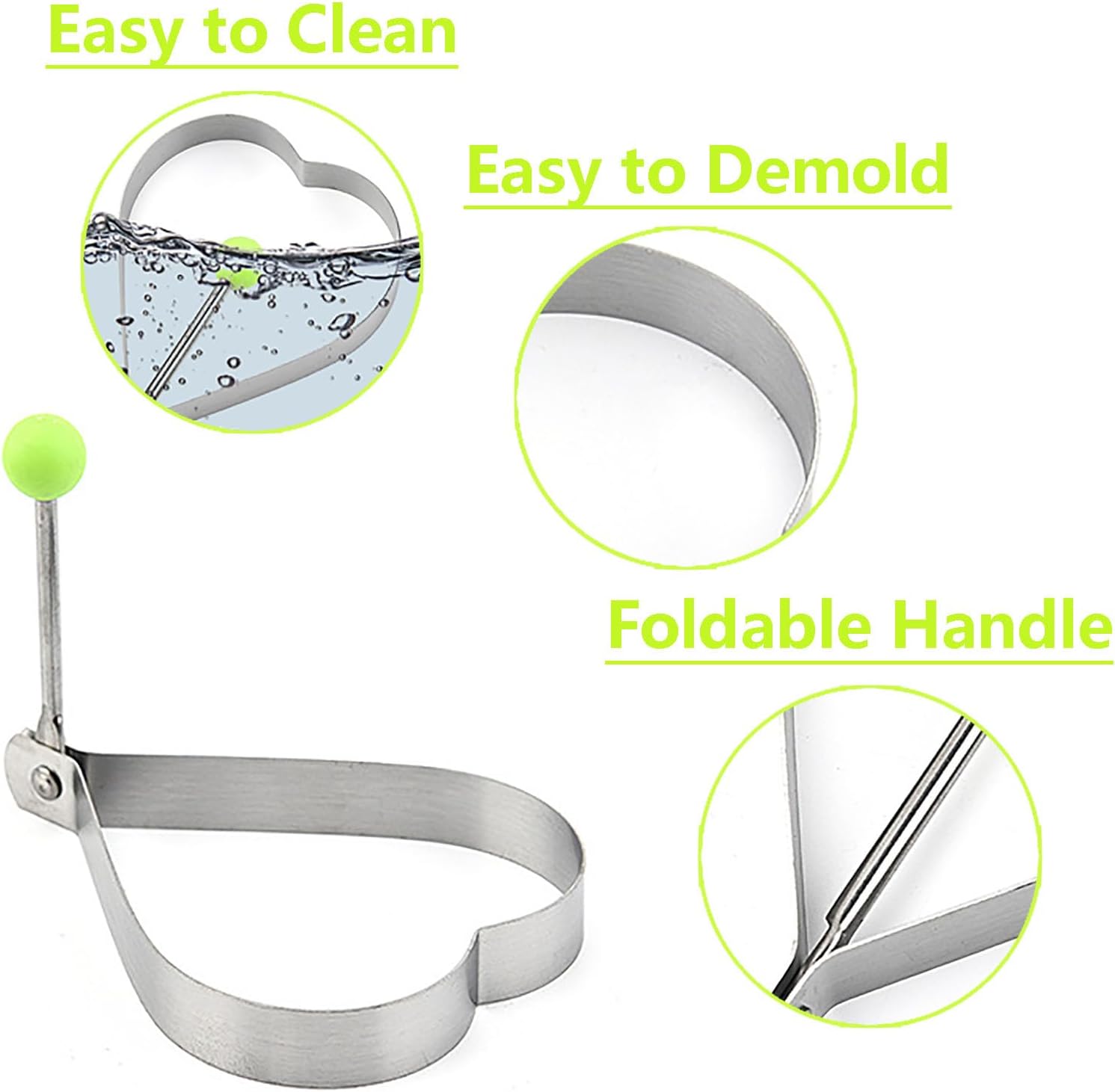💕【Insulated & Foldable Handle】: Our heart shaped egg shaper has extra silicone protective balls on the top of the hand to prevent burns. The handle is made of stainless steel to ensure safe and comfortable use, and the collapsible design is more convenient for storage