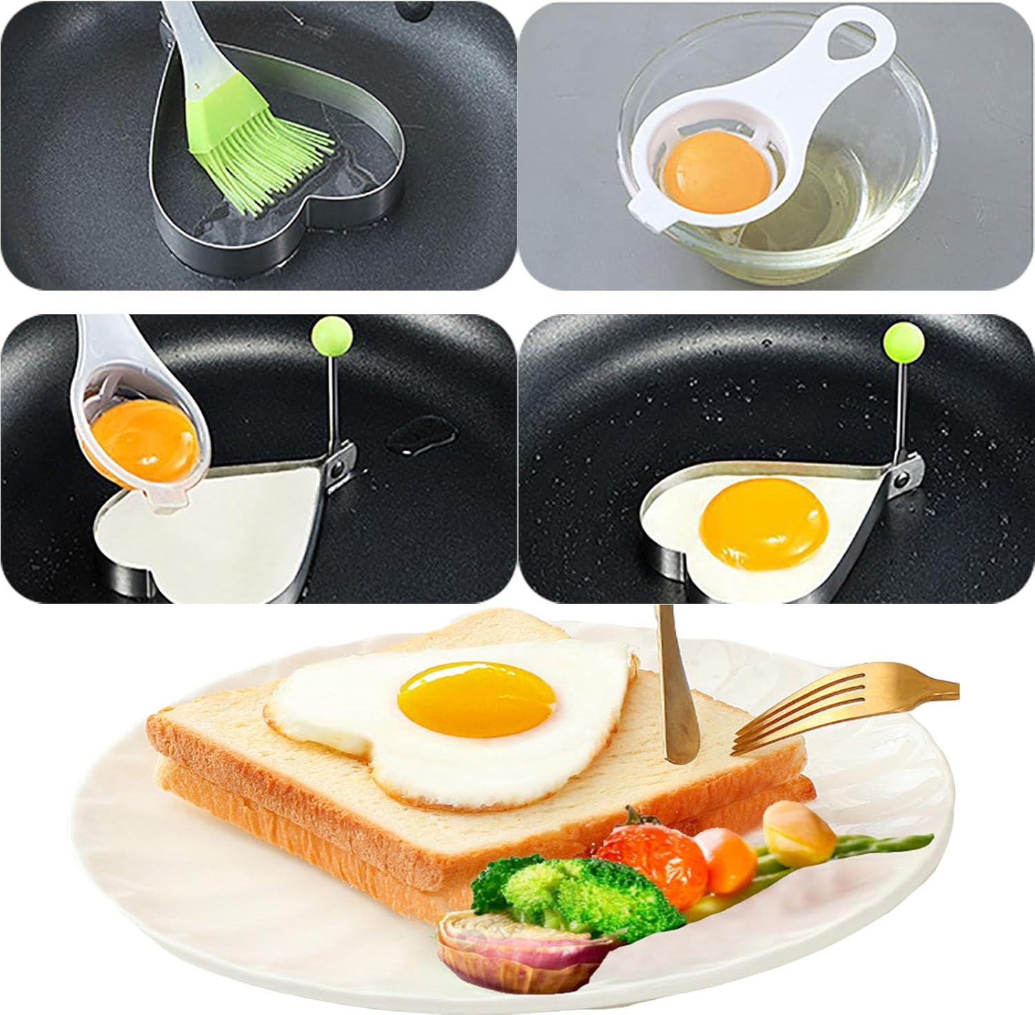 💕【Easy to Use】:Our heart pancake and egg rings are very easy to use. With a silicone oil brush and egg white separator, you can better control the amount of oil and ensure the roundness of the yolk, making the omelette healthier and more beautiful.