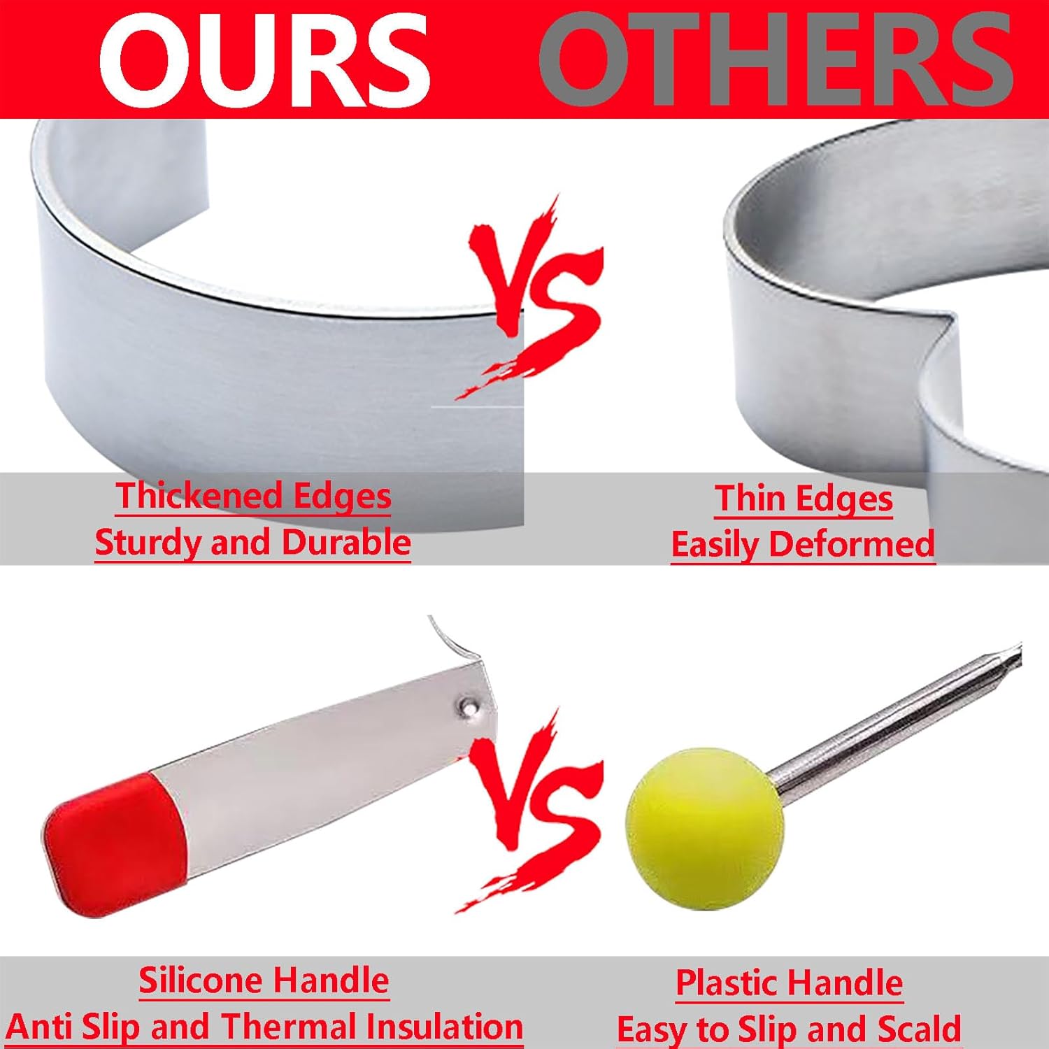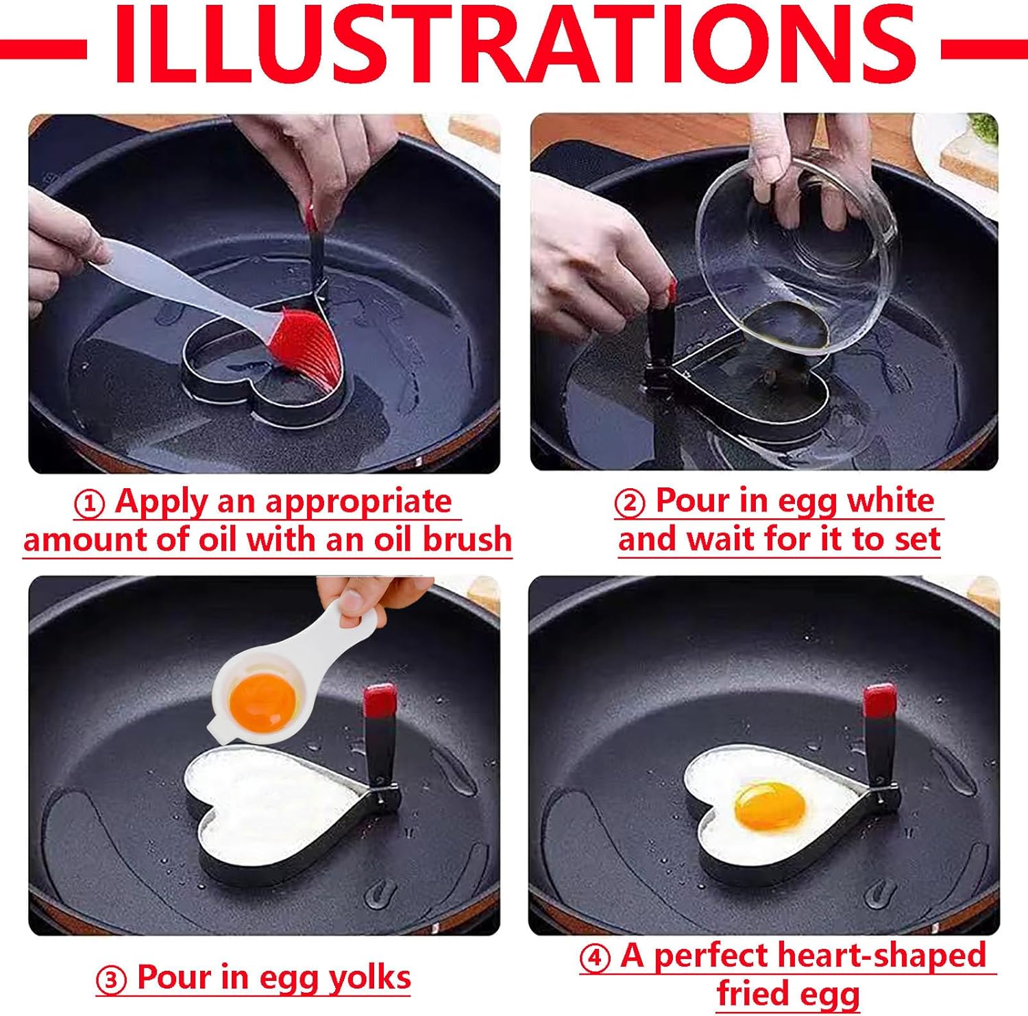 【Multi-Functional Pancake Molds】: The heart-shaped egg cooker ring can not only be used to make omelette, but also can be used to make mini pancakes, omelettes, Benedict eggs, cheese pancakes, and crepes to make a variety of food, let your imagination go wild!