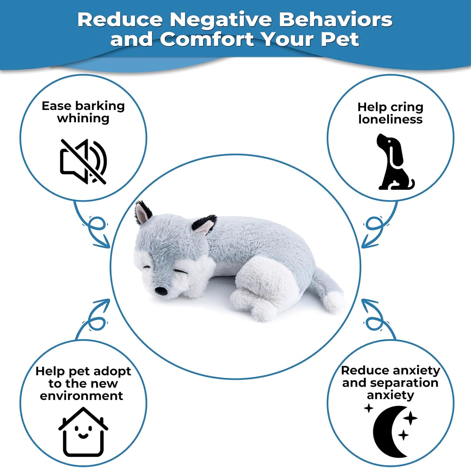 Heartbeat Puppy Toy Heartbeat Stuffed Toy for Dog Anxiety Relief and Calming Aid, Heartbeat Stuffed Animal for Puppy Sleep Aid Crate Training, Puppy Needs Puppy Essential, Husky