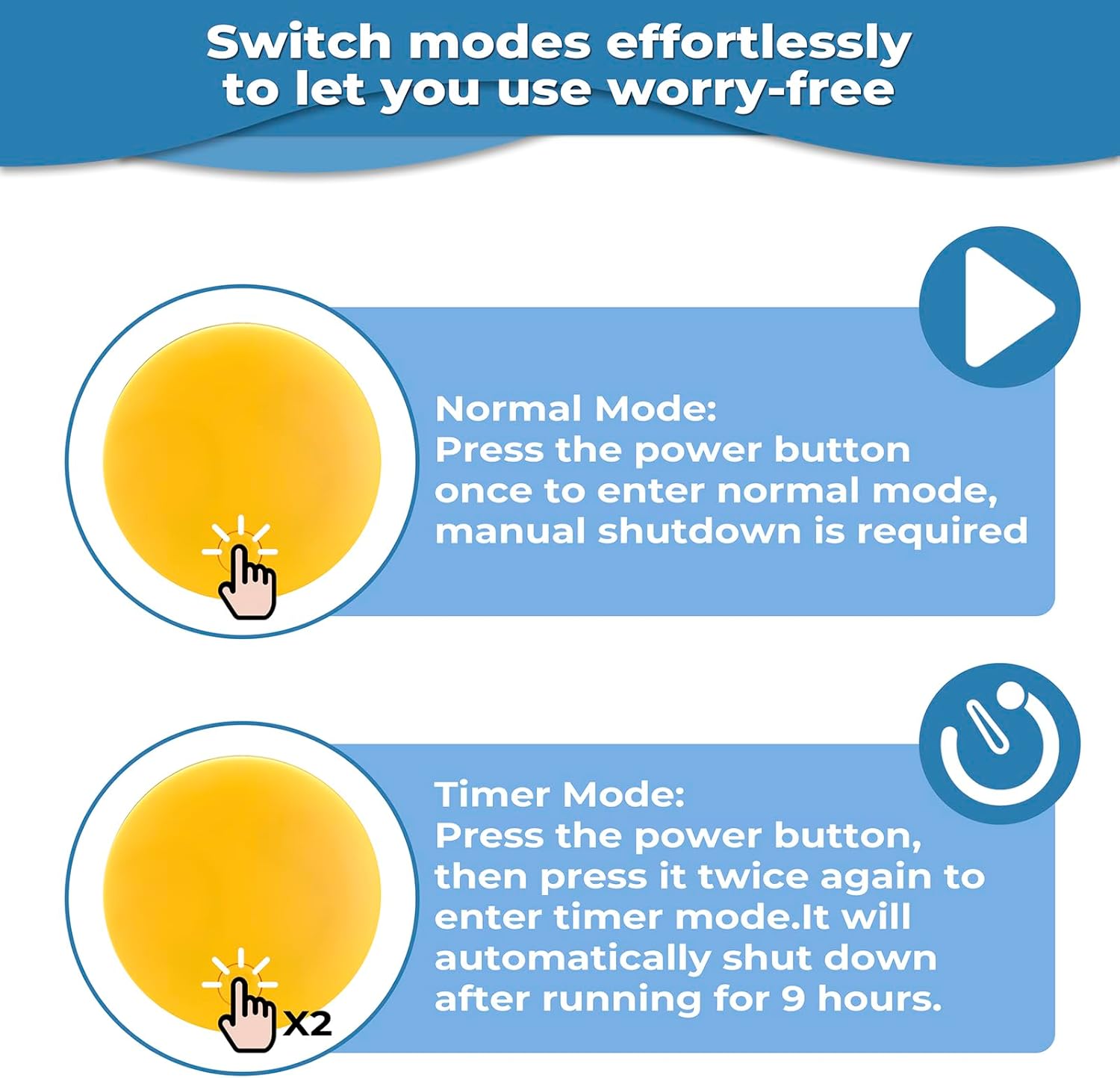 Two heartbeat Modes: We have designed two heartbeat modes for the puppy heartbeat toy. In mode one, press the switch button once to enter the regular mode, and the heartbeat sound will continue until the power is exhausted. In mode two, after pressing the switch button once to start the heartbeat sound, double-click the switch button again to enter the timed mode, and the heartbeat sound will stop after 9 hours.
