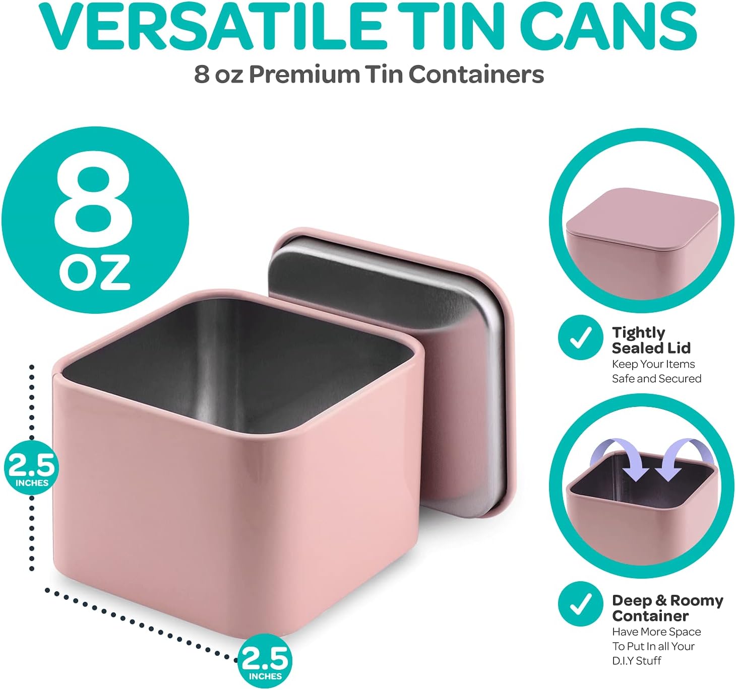 Hearts & Crafts Pink Square Candle Tins 8 oz with Lids – 24-Pack of Bulk Candle jars for making Candles, Arts & Crafts, Storage, Gifts, and More – Empty Candle Jars with Lids