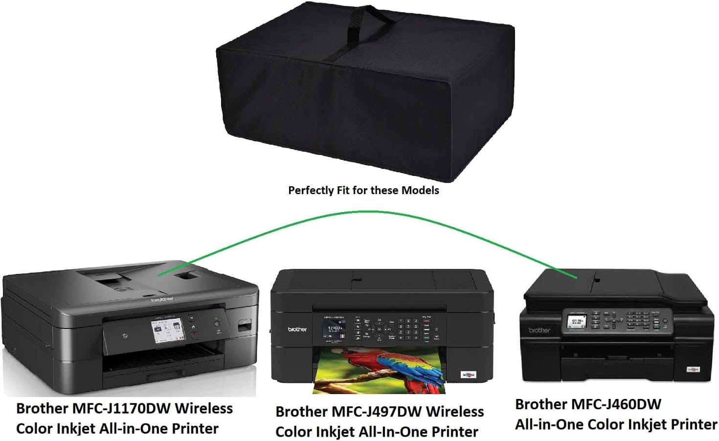 This Printer Cover is Perfectly Fits for Brother MFC-J1170DW/MFC-J497DW/MFC-J460DW Wireless Color Inkjet All-in-One Printer;DIMENSIONS (Wx D x H): 18.1inch X 14.2inch X 5.9inch (46 x 36 x 15cm).