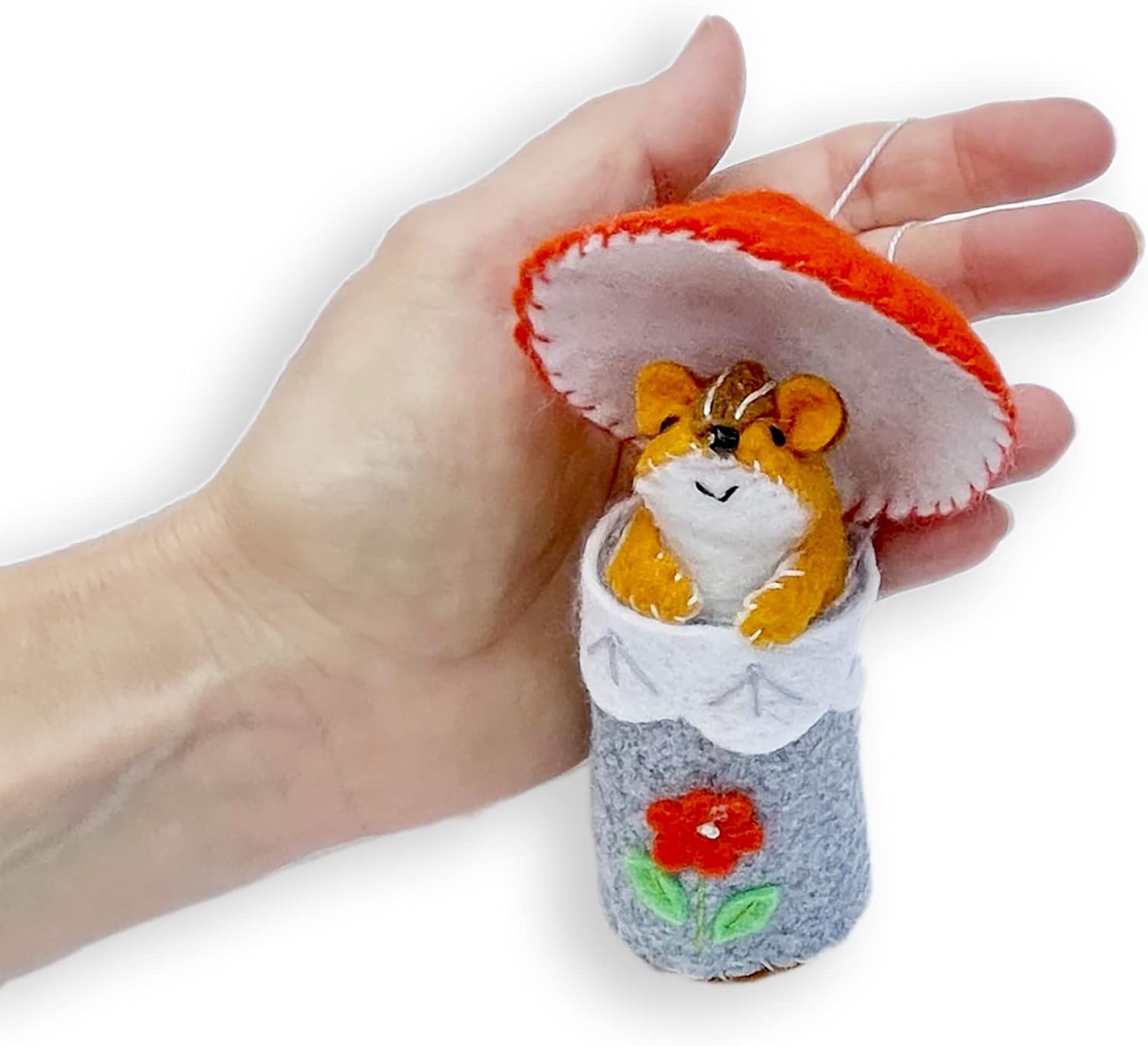 Little Hedgehog, Chipmunk and Mouse softies hop in and out of their Birch Trunk, Mushroom and Pinecone homes. Quick and easy to make, simply cut, fold and stitch felt layers together. Once you’ve made one animal you’ll easily be able to make the others. these interactive heirloom ornaments will delight generations of tree trimmers. Each Kit contains three times the fun with enough supplies to make all three keepsake ornaments. All components are included.