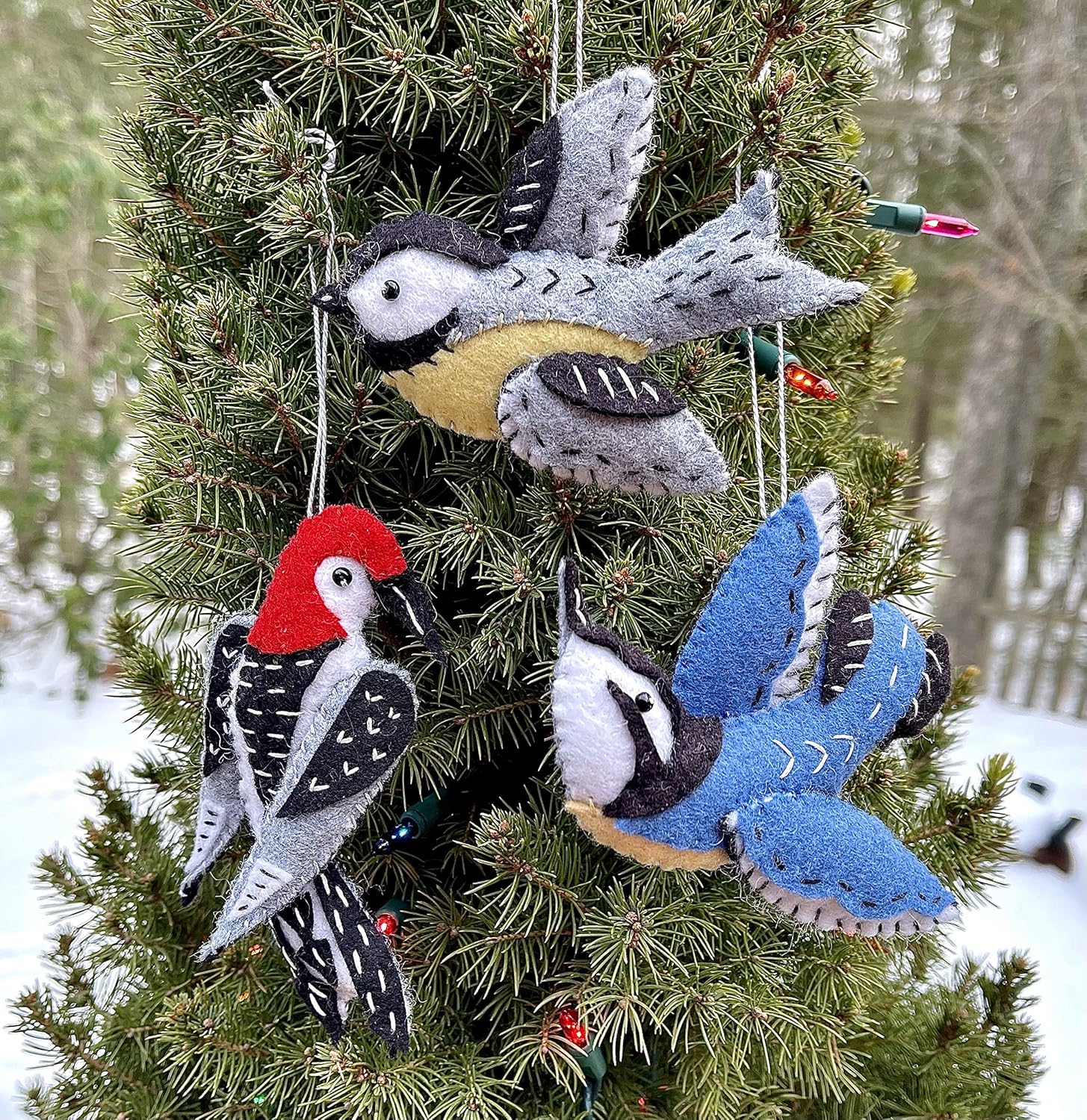 Heidi Boyd | Woodpecker, Nuthatch and Chickadee Ornaments | Brighten Up Your Christmas Tree with These Handmade Holiday Ornaments | All Inclusive Felt Craft Sewing Kit Age 13+