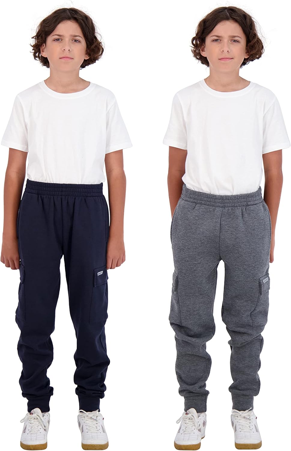 Hind Boys 2-Pack Fleece Jogger Sweatpants with Cargo Pockets for Kids Athletic & Casual Wear