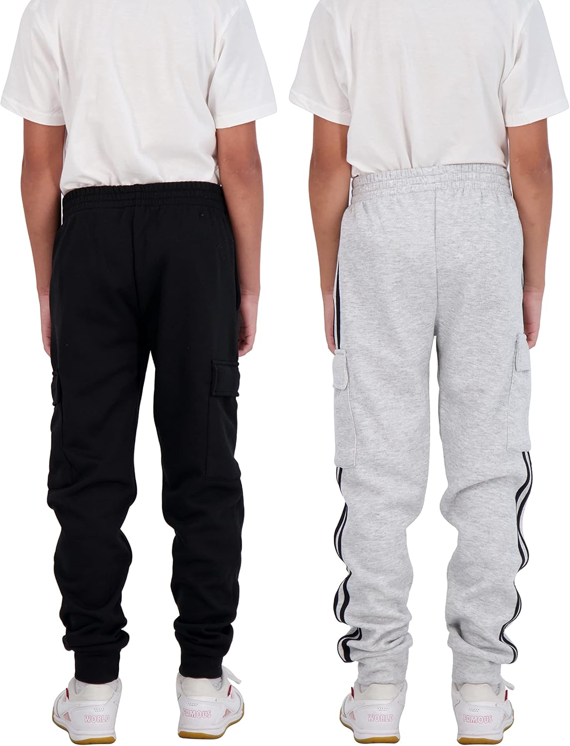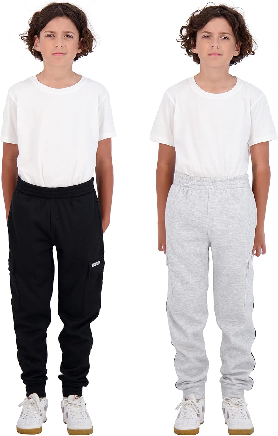 Hind Boys 2-Pack Fleece Jogger Sweatpants with Cargo Pockets for Kids Athletic & Casual Wear